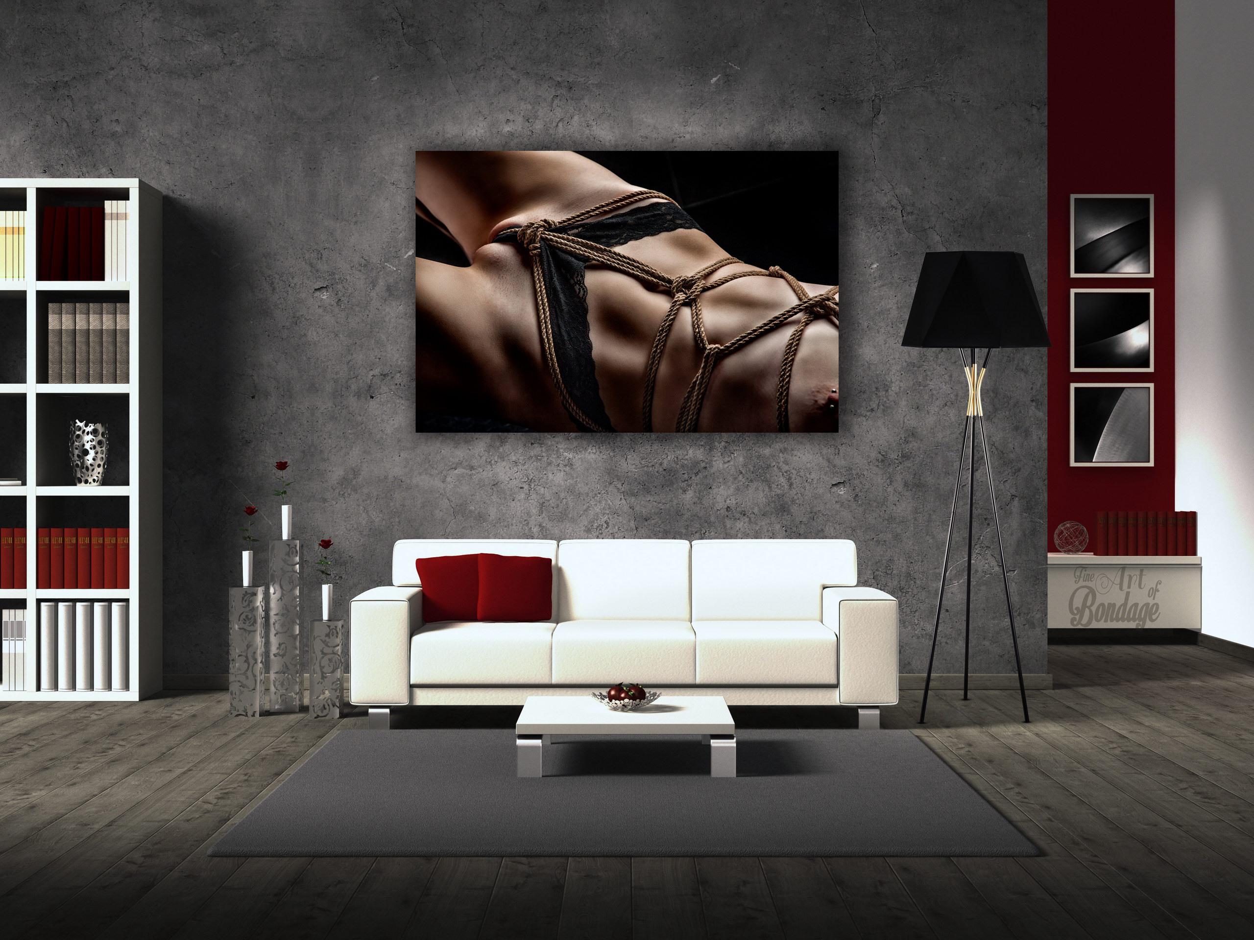 Das Motiv ist aus der Bilderserie des "Fine Art of Bondage" Fotografie Projektes des Fotografen Rod Meier. Die Bilder sind eine künstlerische Umsetzung des westlichen und japanischen Bondage (Shibari/Kinbaku) mit einem Bildstil zwischen Foto und Malerei.