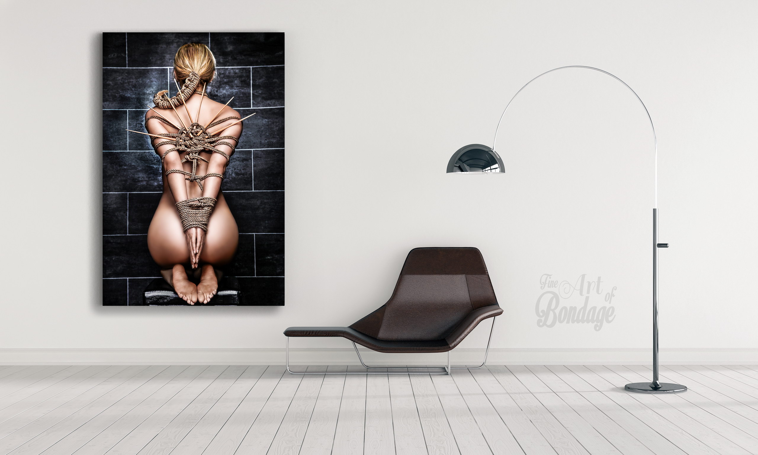 Das Motiv ist aus der Bilderserie des "Fine Art of Bondage" Fotografie Projektes des Fotografen Rod Meier. Die Bilder sind eine künstlerische Umsetzung des westlichen und japanischen Bondage (Shibari/Kinbaku) mit einem Bildstil zwischen Fotografie und Malerei.
