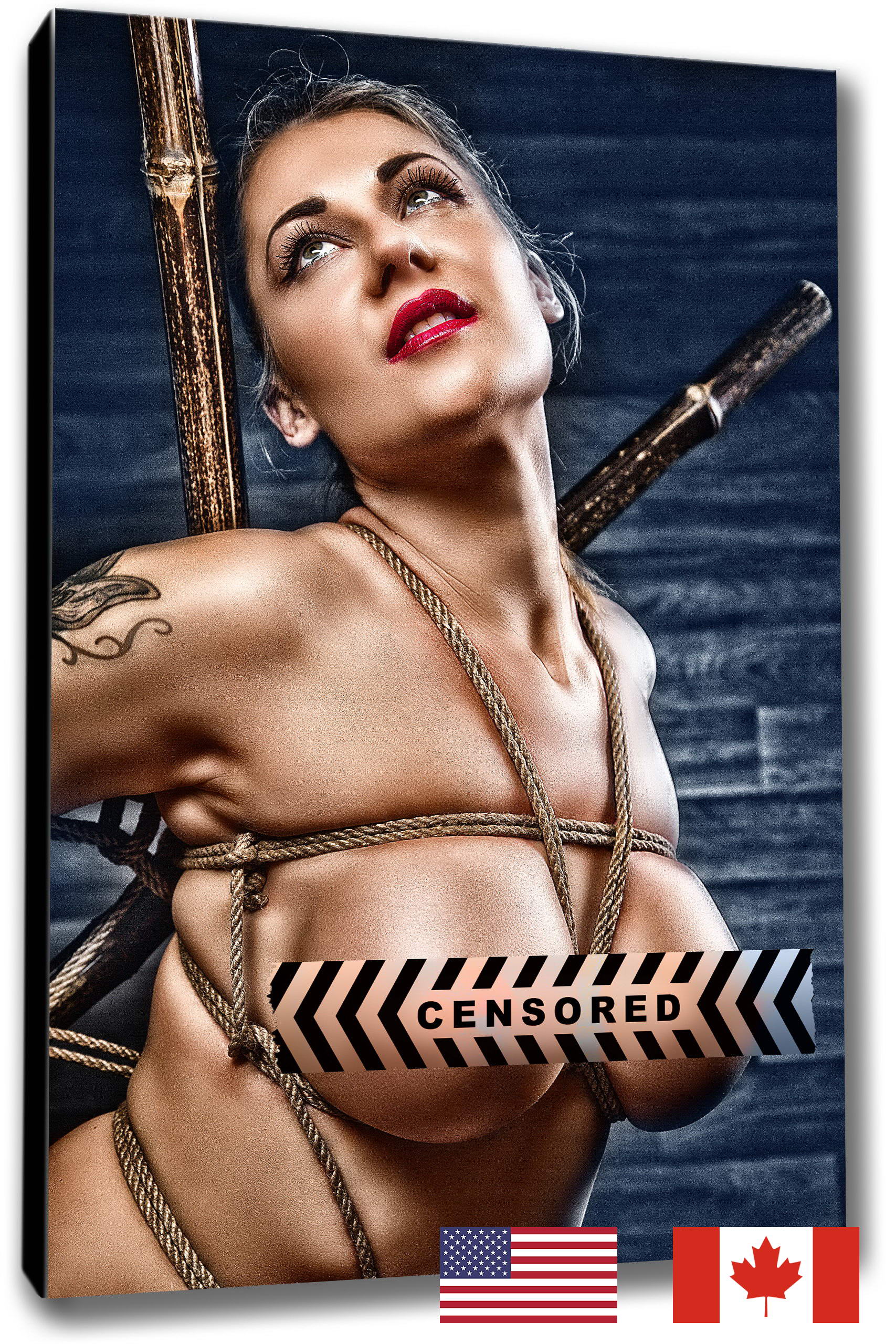 The image is from the "Fine Art of Bondage" photography project. Artful photography with highly retouched images in a very colorful and high contrast.