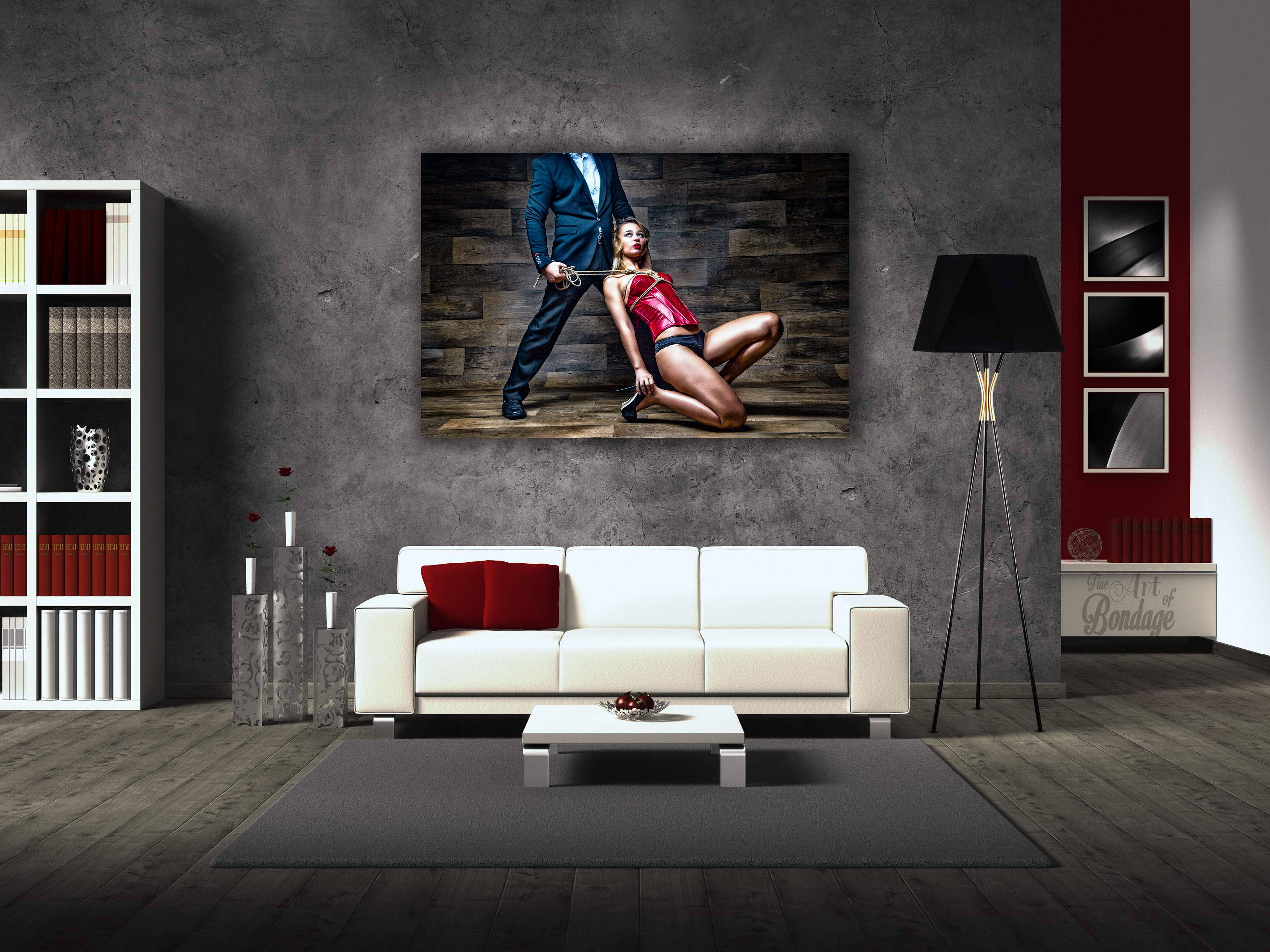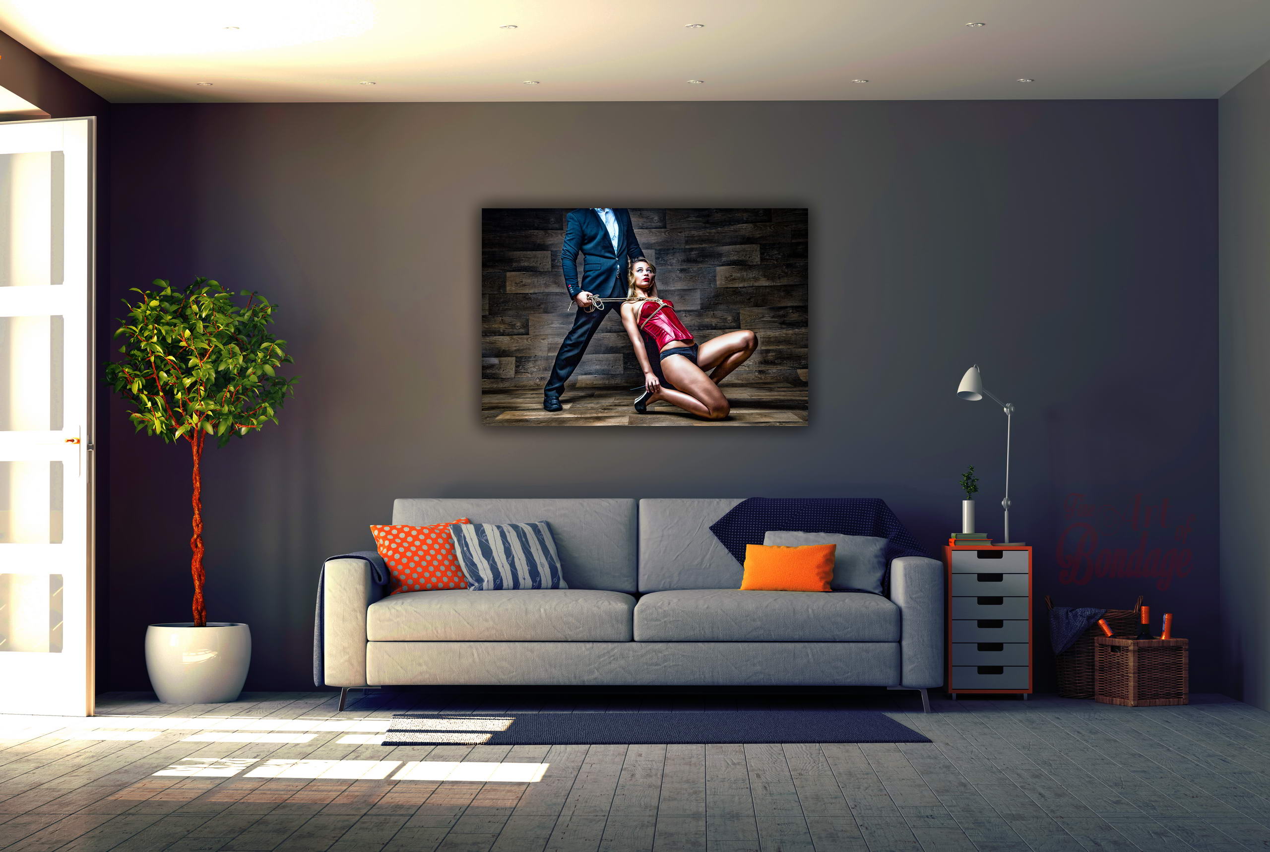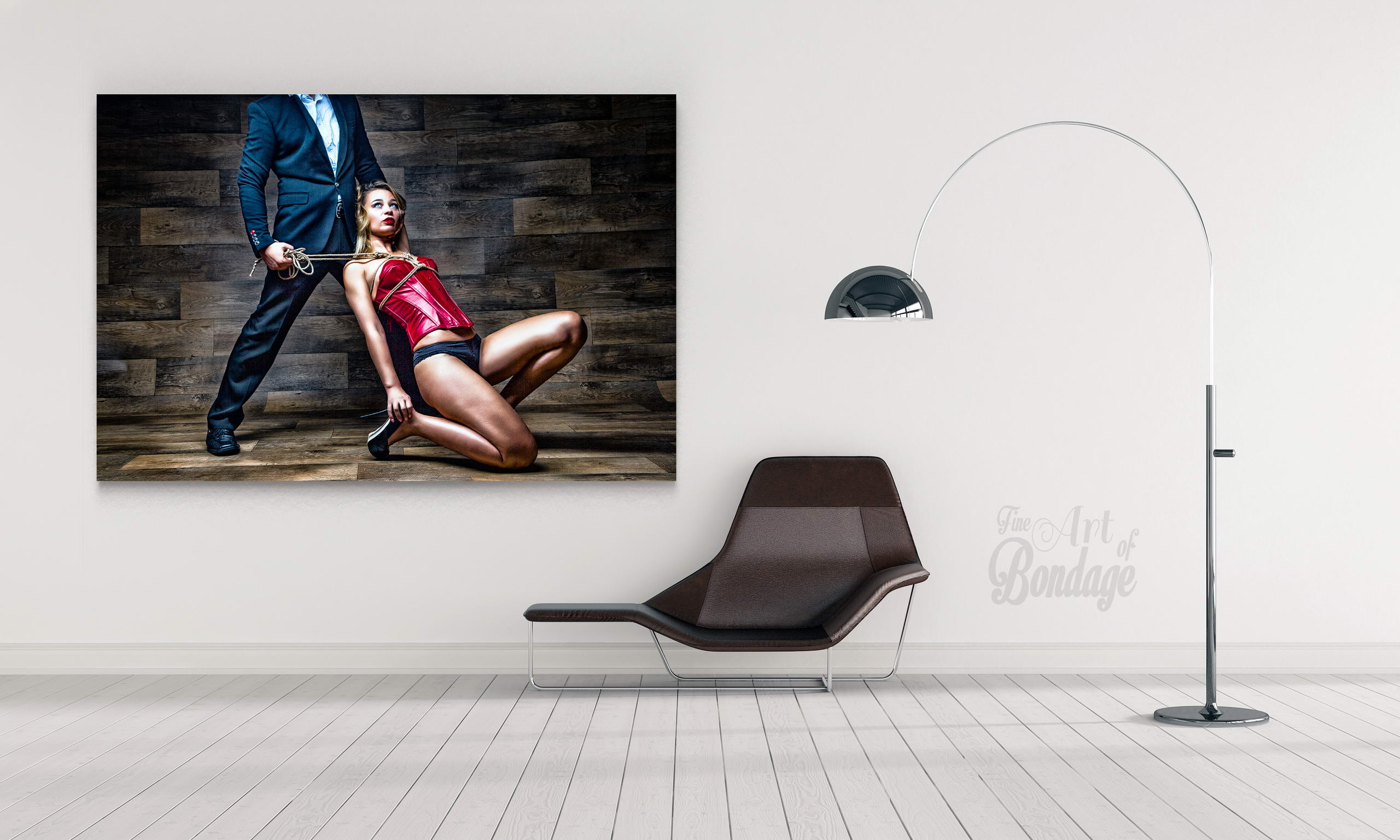 The image is from the "Fine Art of Bondage" photography project. Artful photography with highly retouched images in a very colorful and high contrast.
