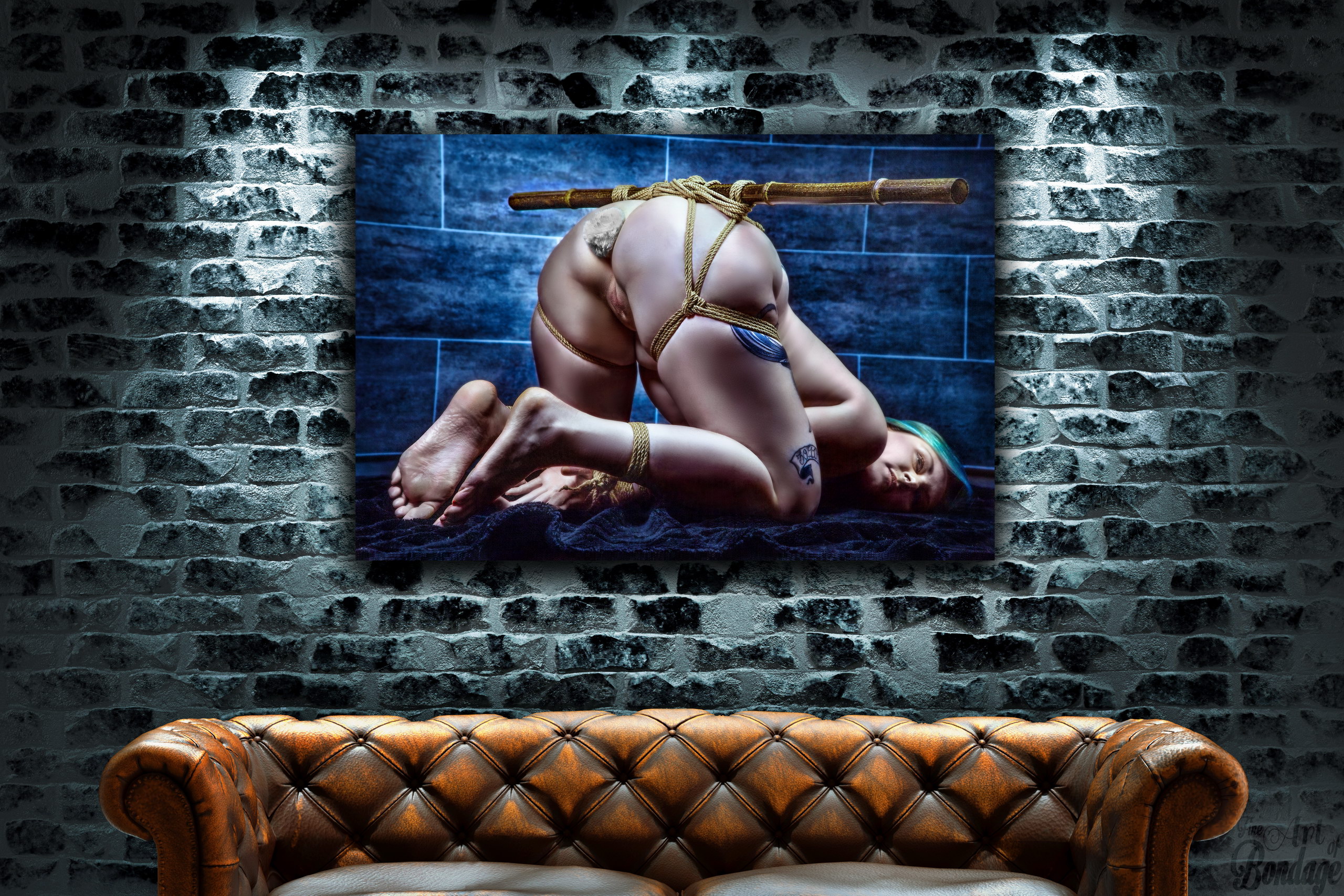 The image is from the "Fine Art of Bondage" photography project. Artful photography with highly retouched images in a very colorful and high contrast.