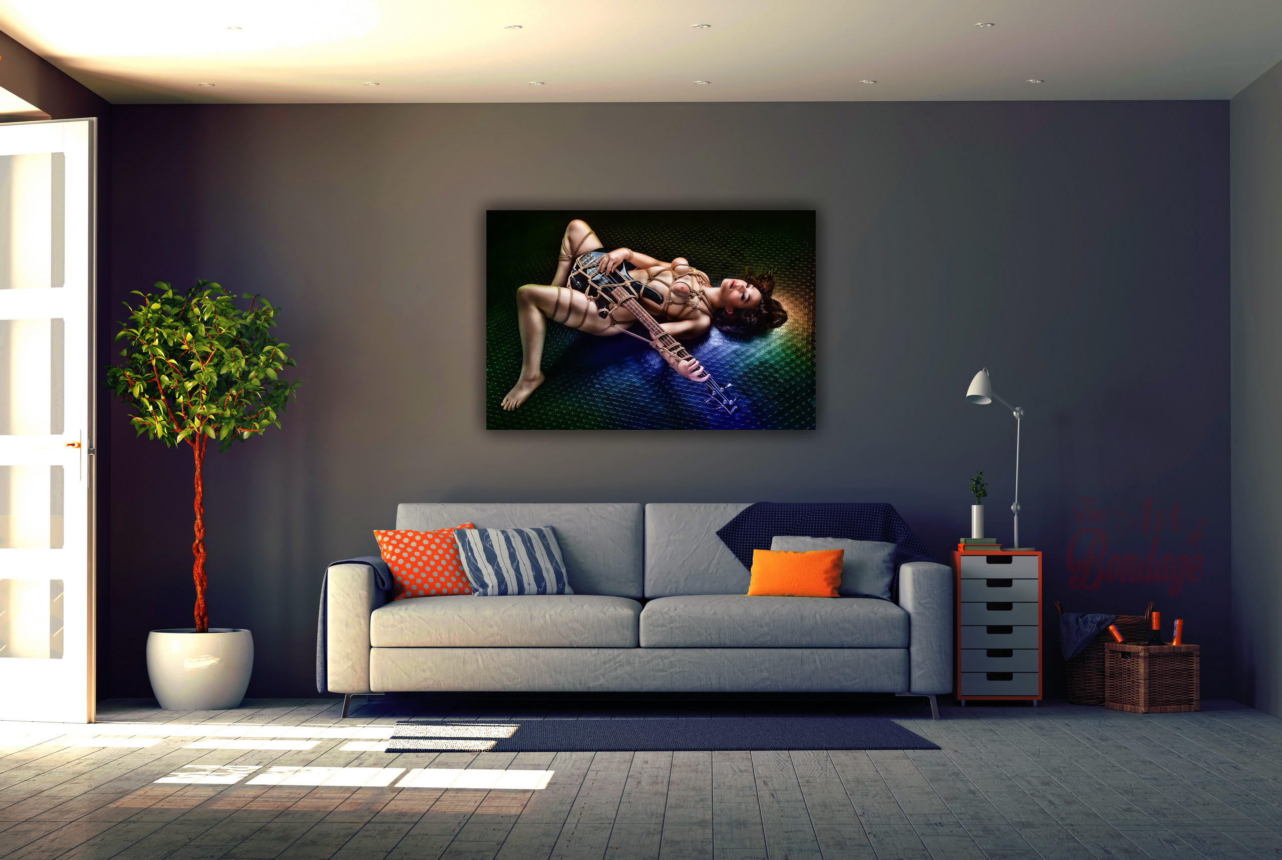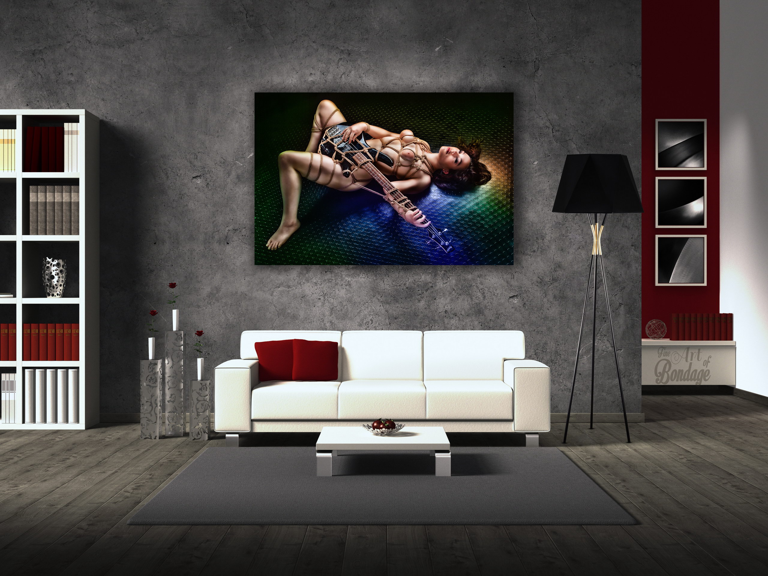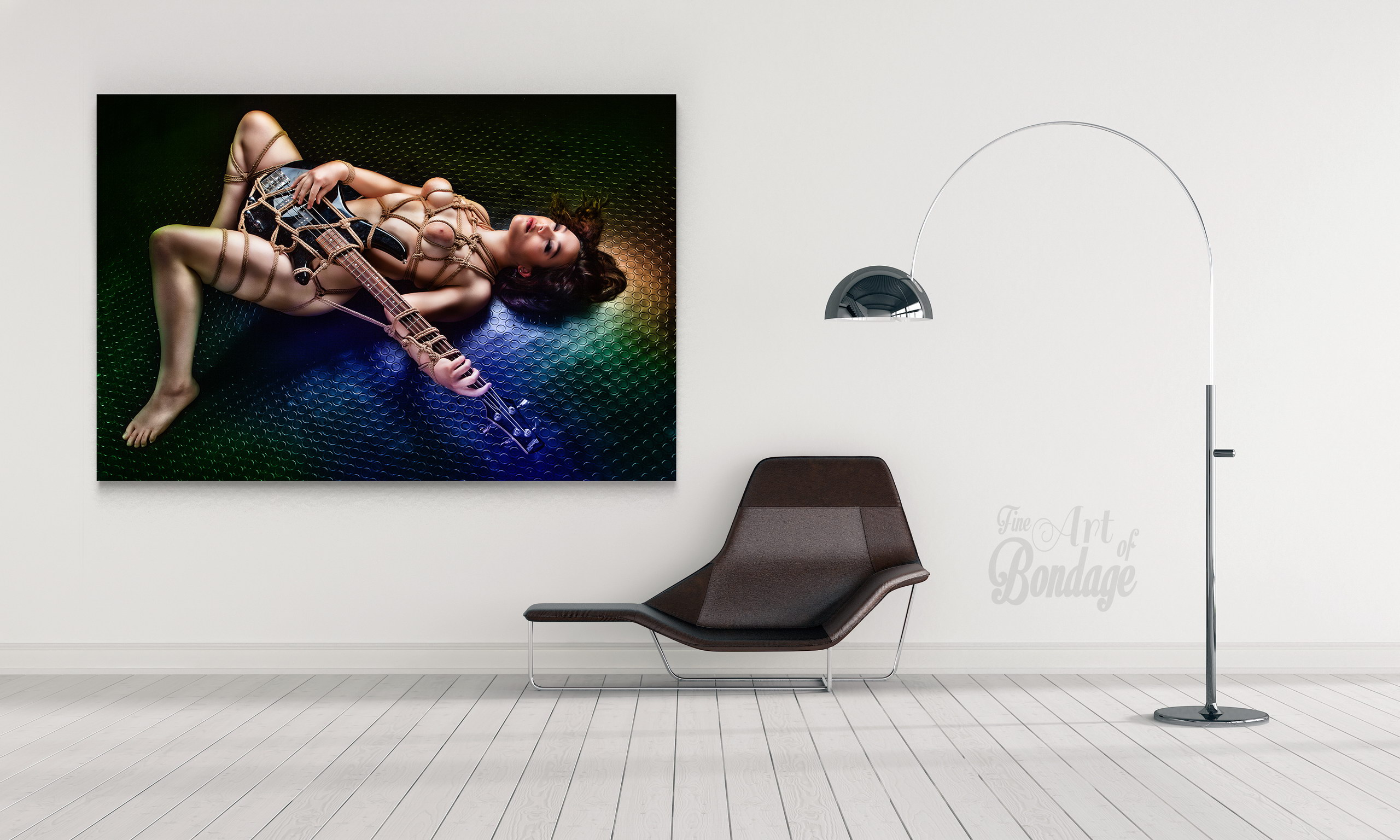 The image is from the "Fine Art of Bondage" photography project. Artful photography with highly retouched images in a very colorful and high contrast.