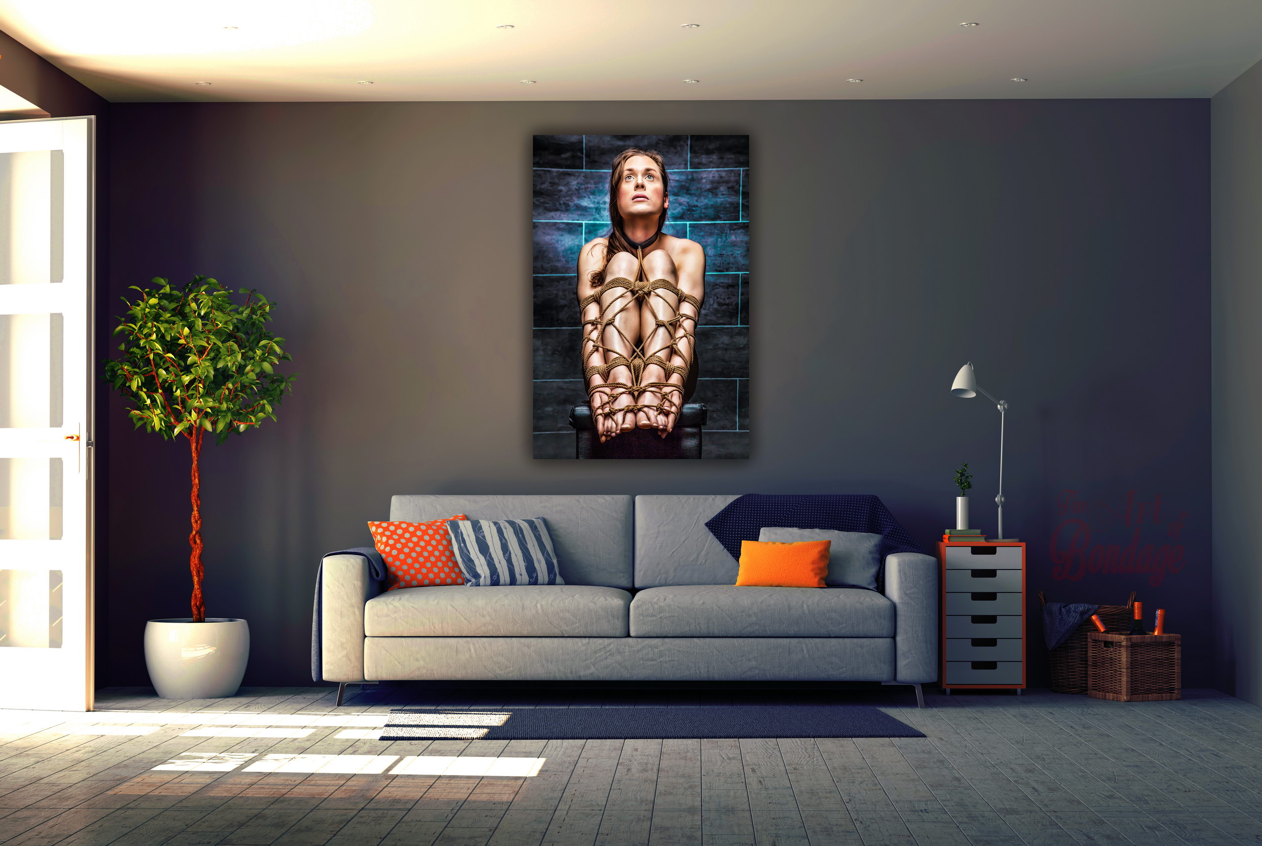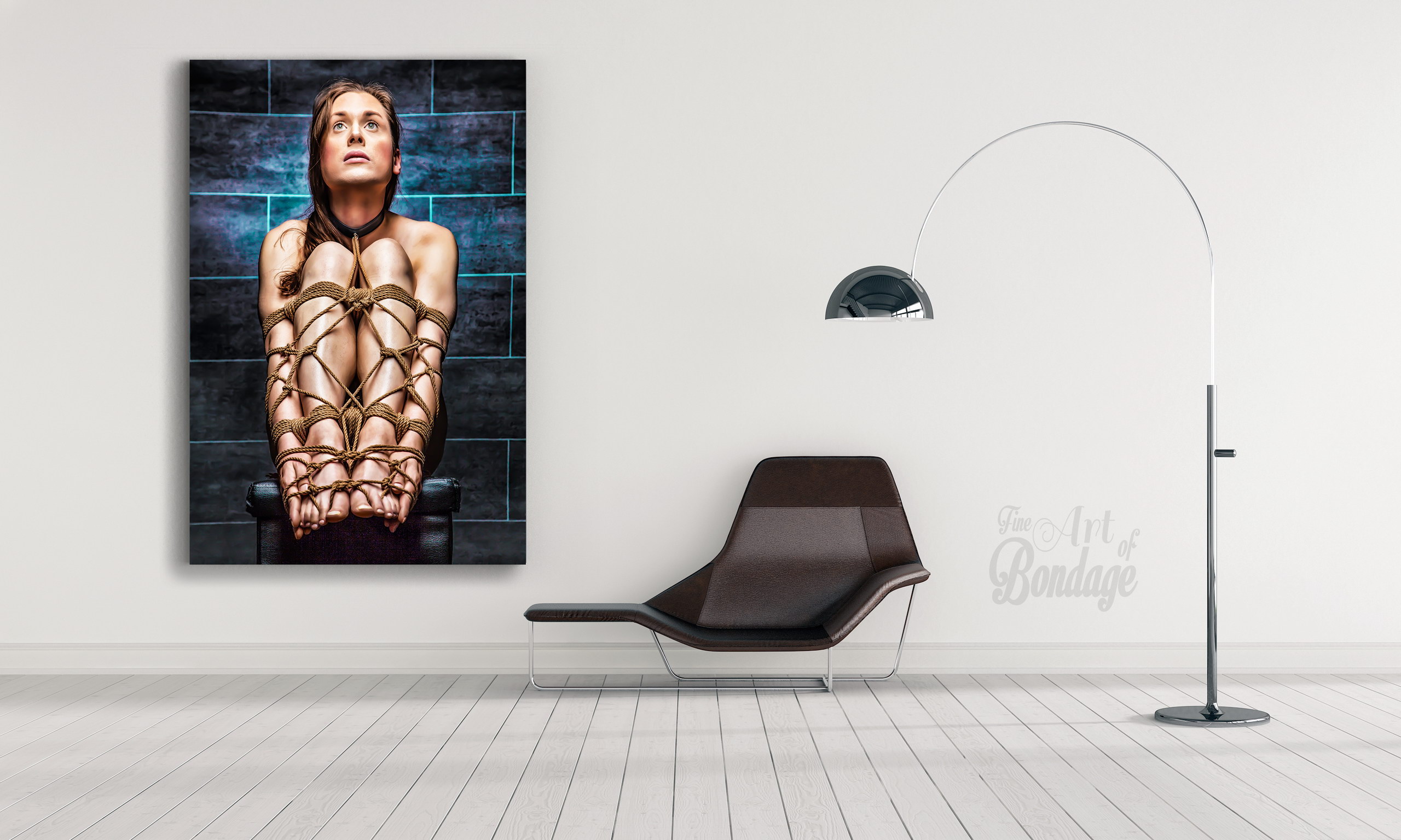 The image is from the "Fine Art of Bondage" photography project. Artful photography with highly retouched images in a very colorful and high contrast.