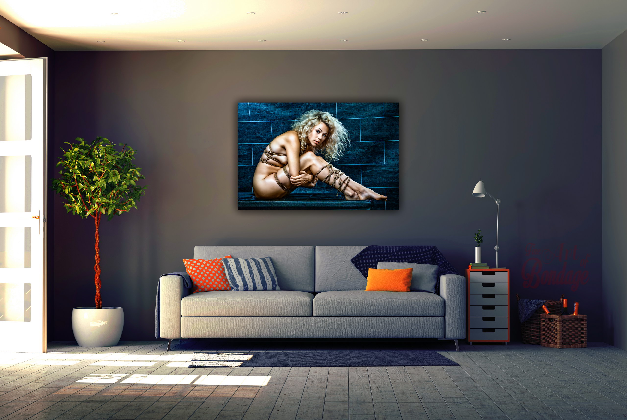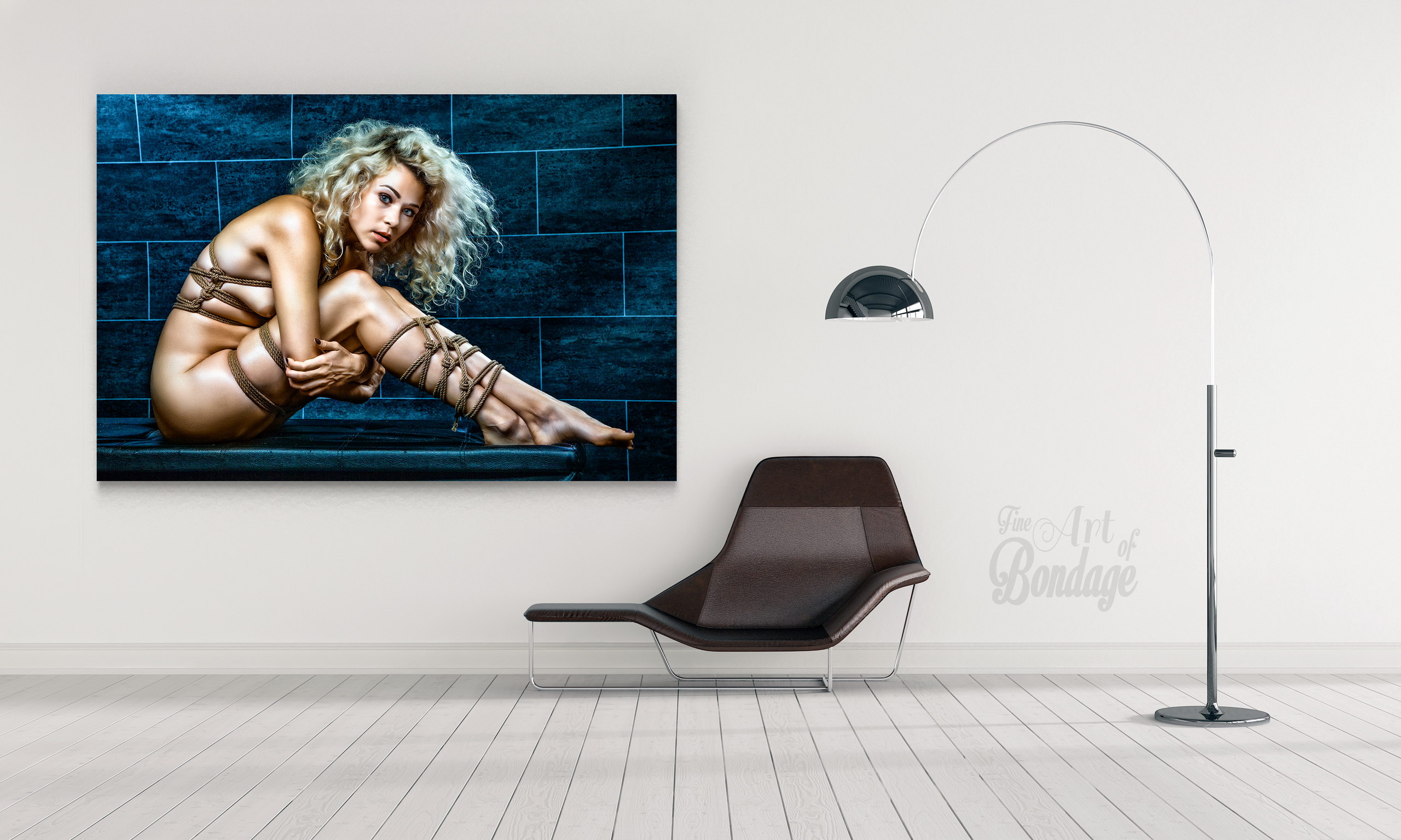 The image is from the "Fine Art of Bondage" photography project. Artful photography with highly retouched images in a very colorful and high contrast.