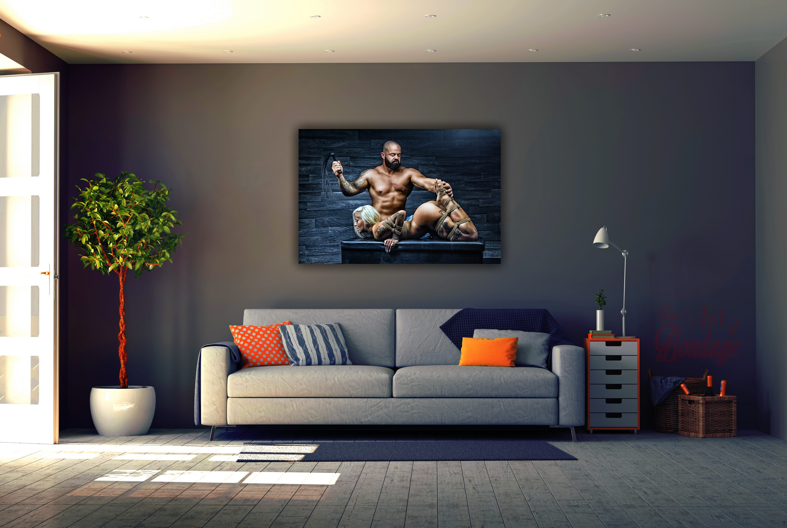 The image is from the "Fine Art of Bondage" photography project. Artful photography with highly retouched images in a very colorful and high contrast.