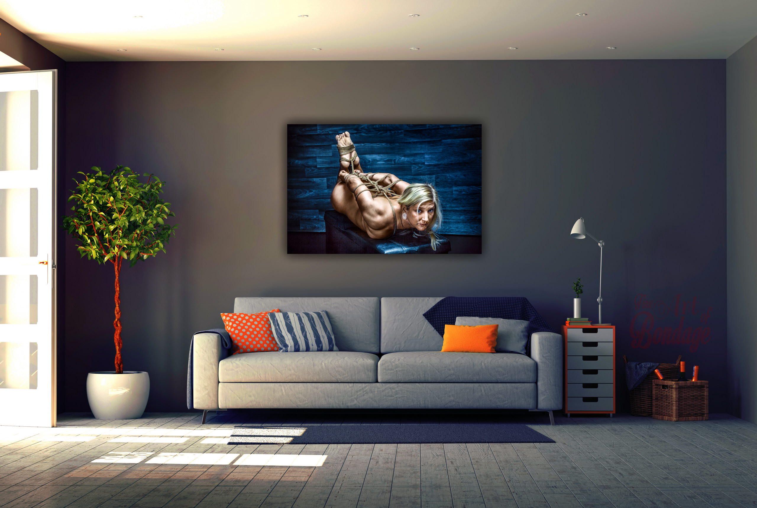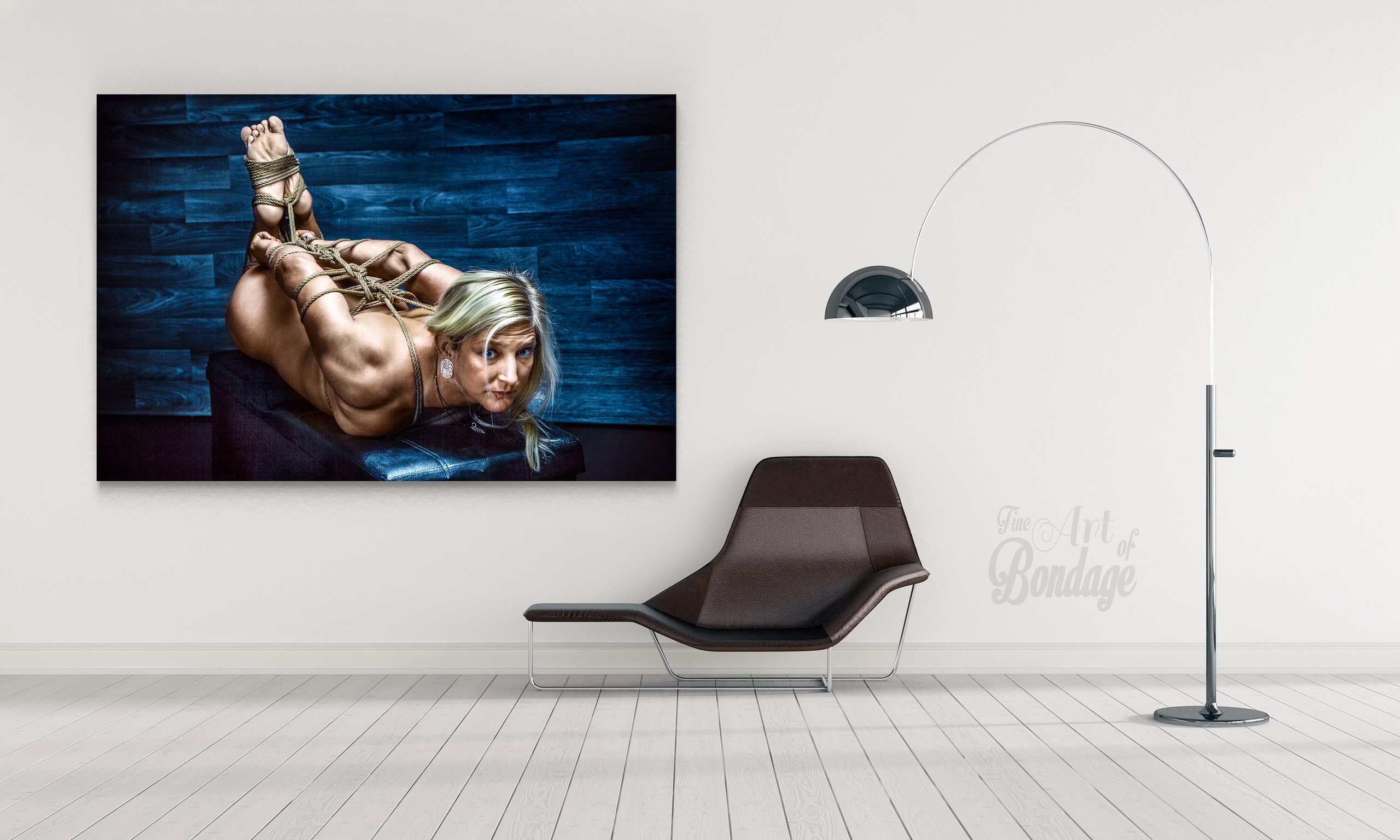 The image is from the "Fine Art of Bondage" photography project. Artful photography with highly retouched images in a very colorful and high contrast.