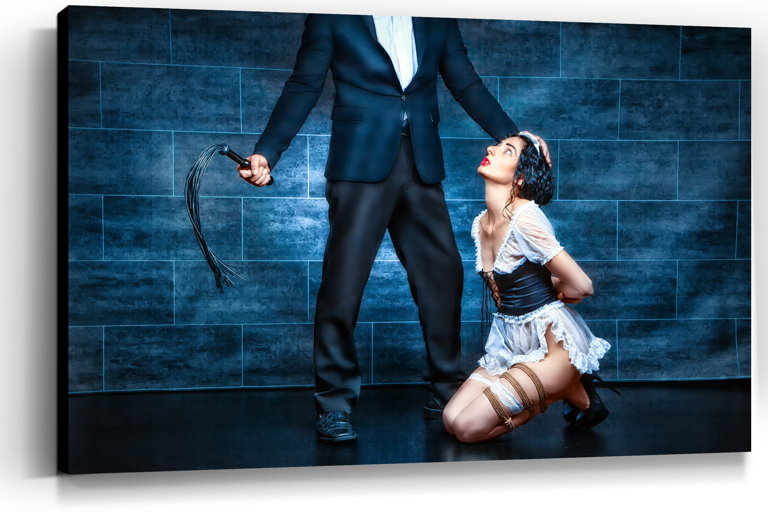 Housemaid and Whip - Beautiful housemaid, her master uses a whip to treat her. Canvas:... more