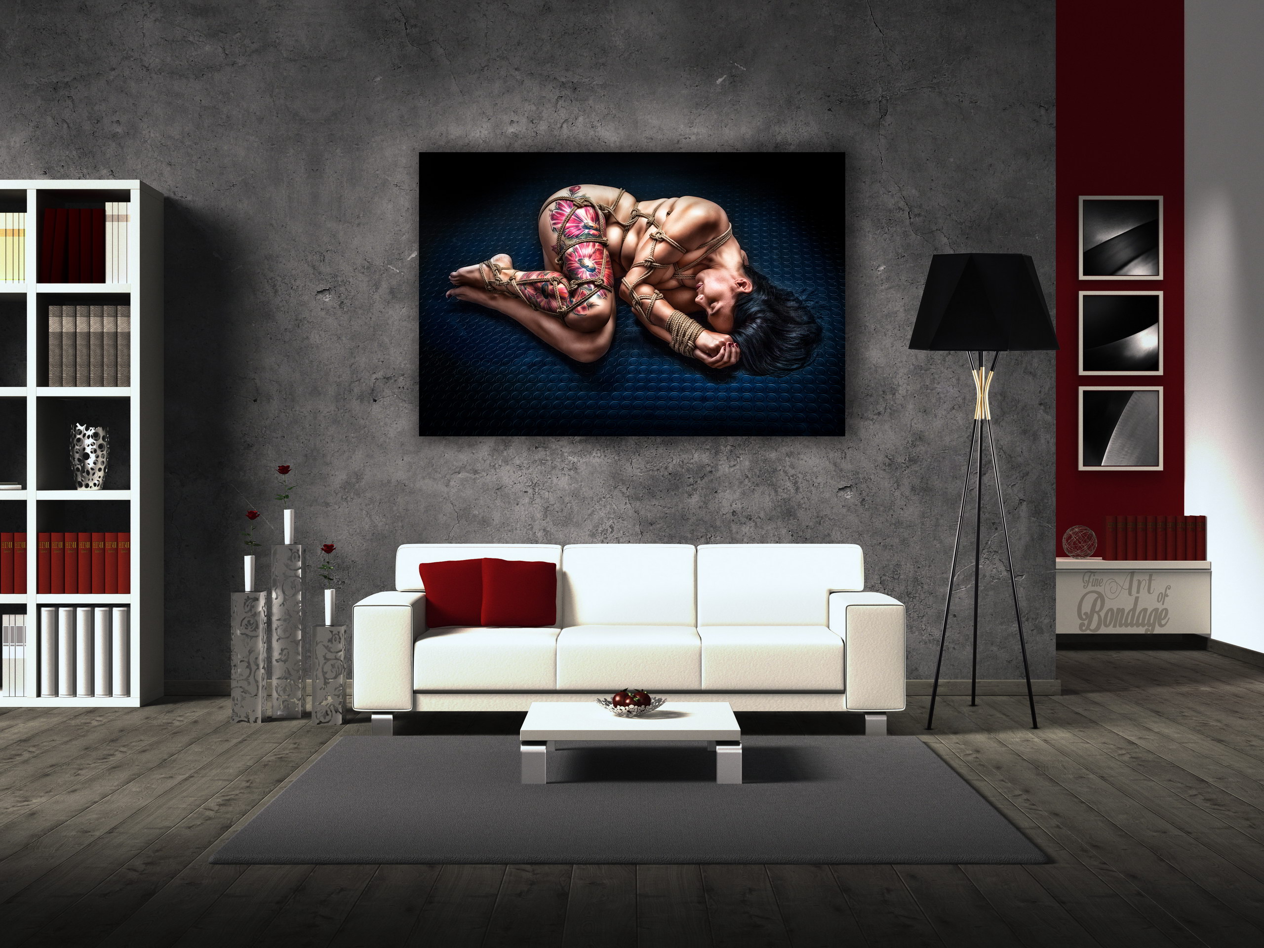 The image is from the "Fine Art of Bondage" photography project. Artful photography with highly retouched images in a very colorful and high contrast.