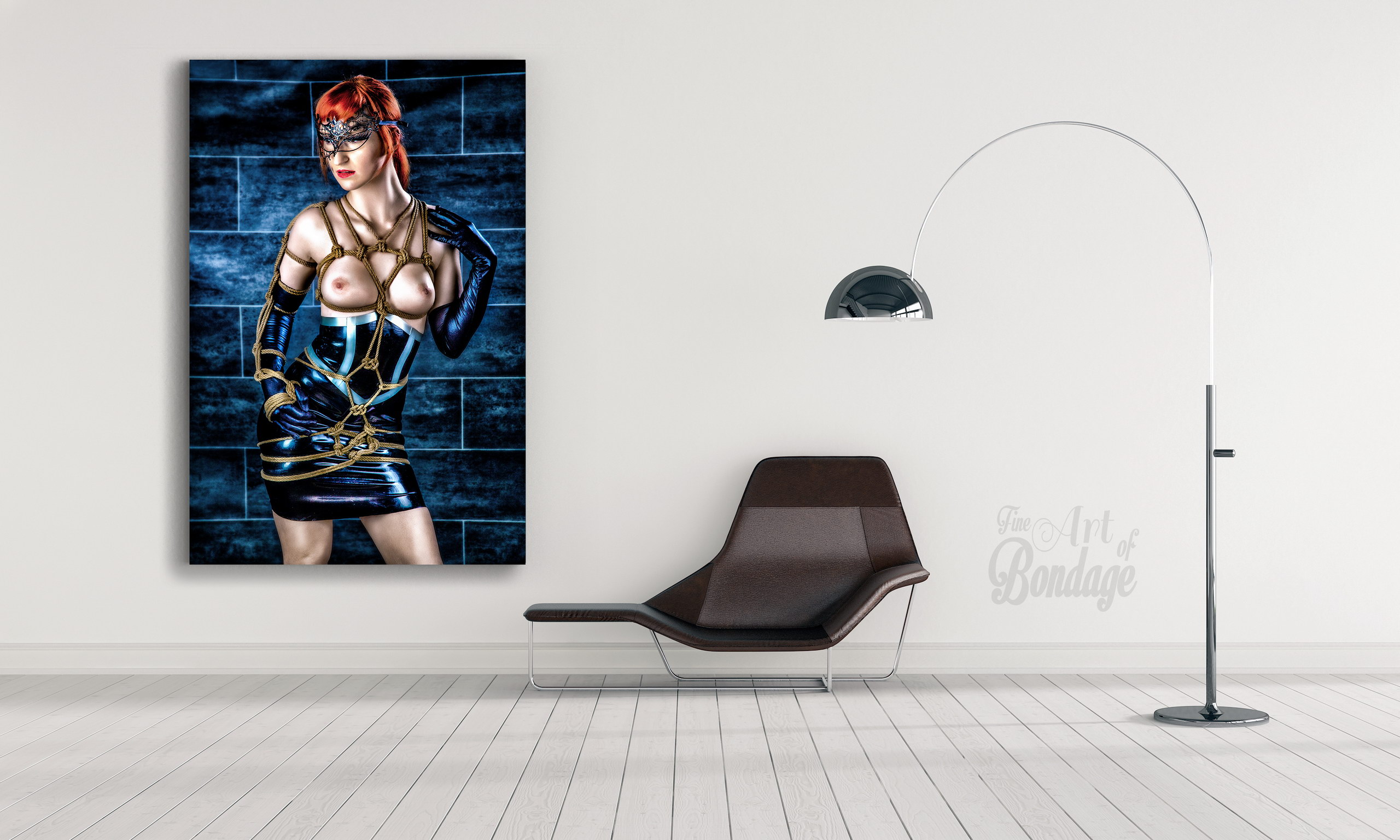 The image is from the "Fine Art of Bondage" photography project. Artful photography with highly retouched images in a very colorful and high contrast.