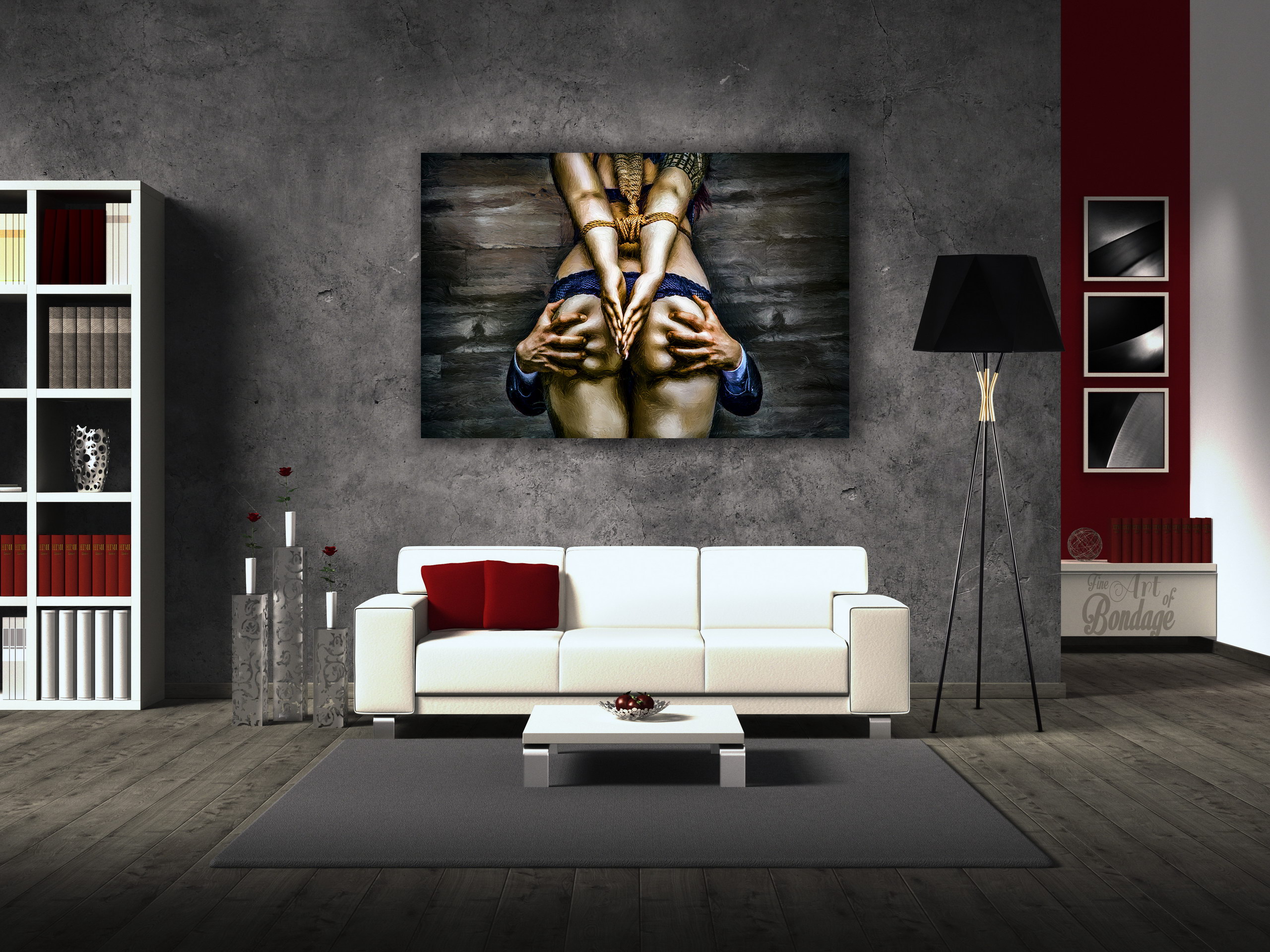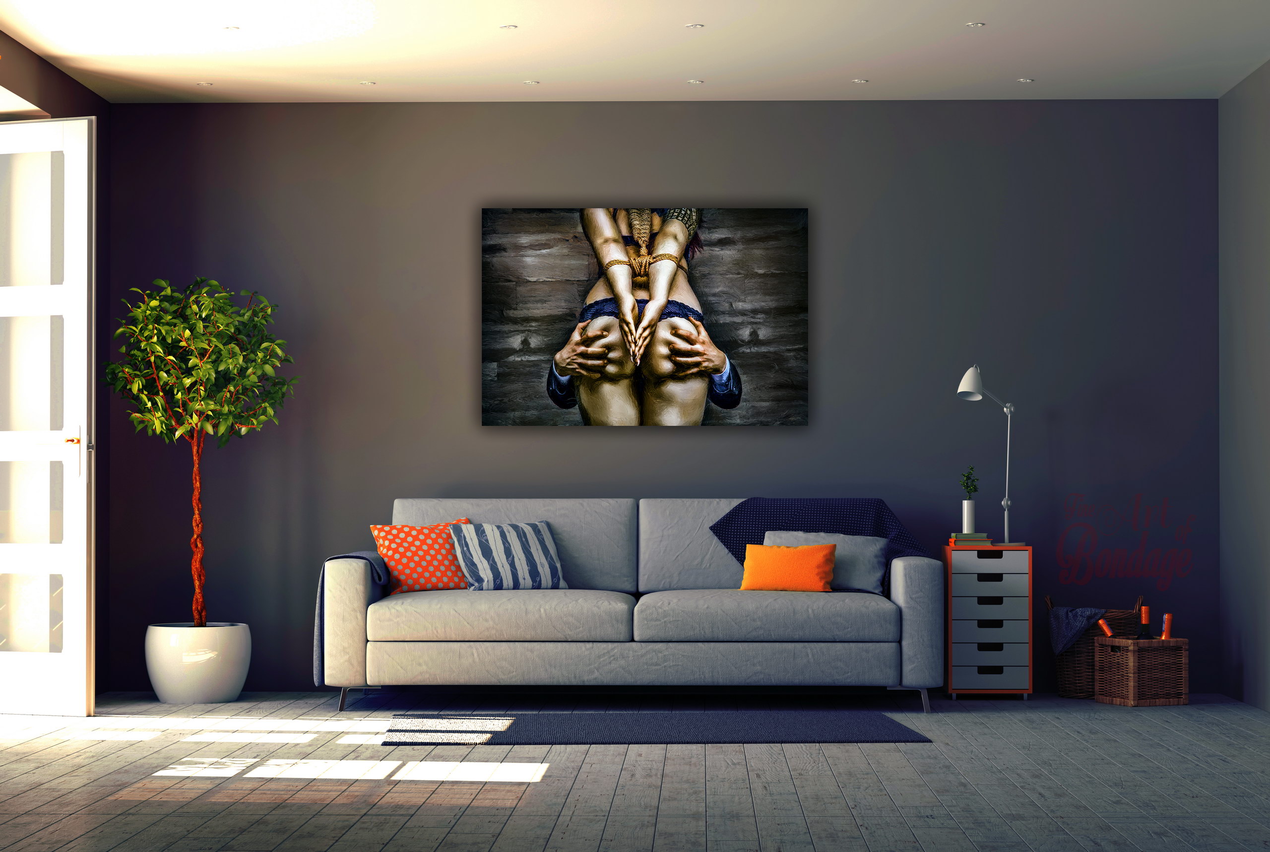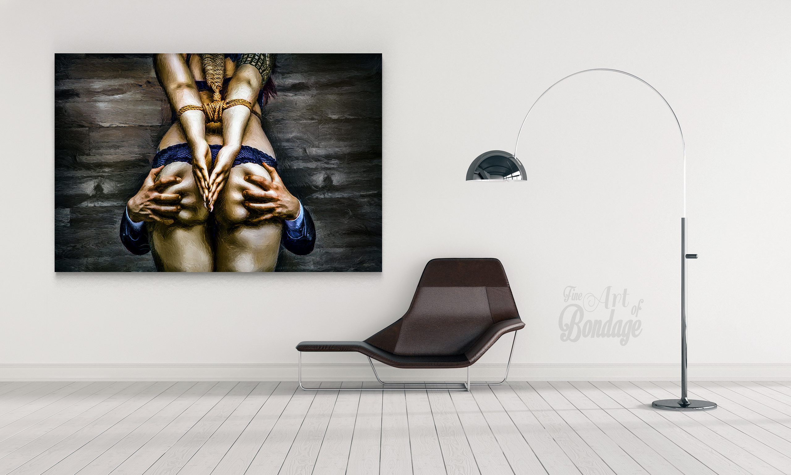 The image is from the "Fine Art of Bondage" photography project. Artful photography with highly retouched images in a very colorful and high contrast.