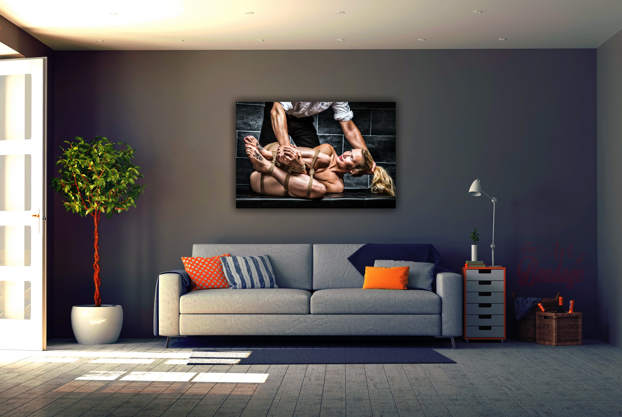The image is from the "Fine Art of Bondage" photography project. Artful photography with highly retouched images in a very colorful and high contrast.