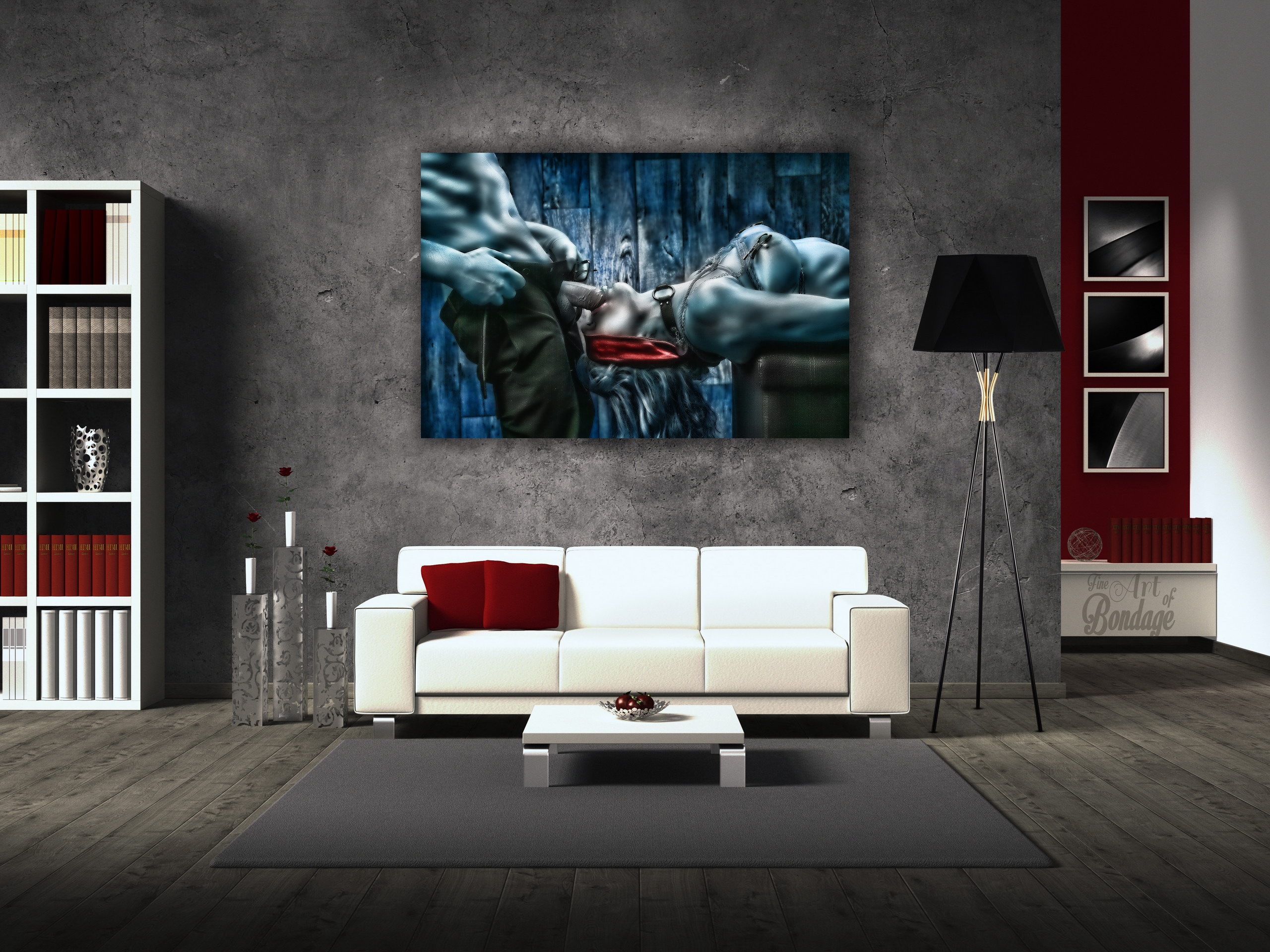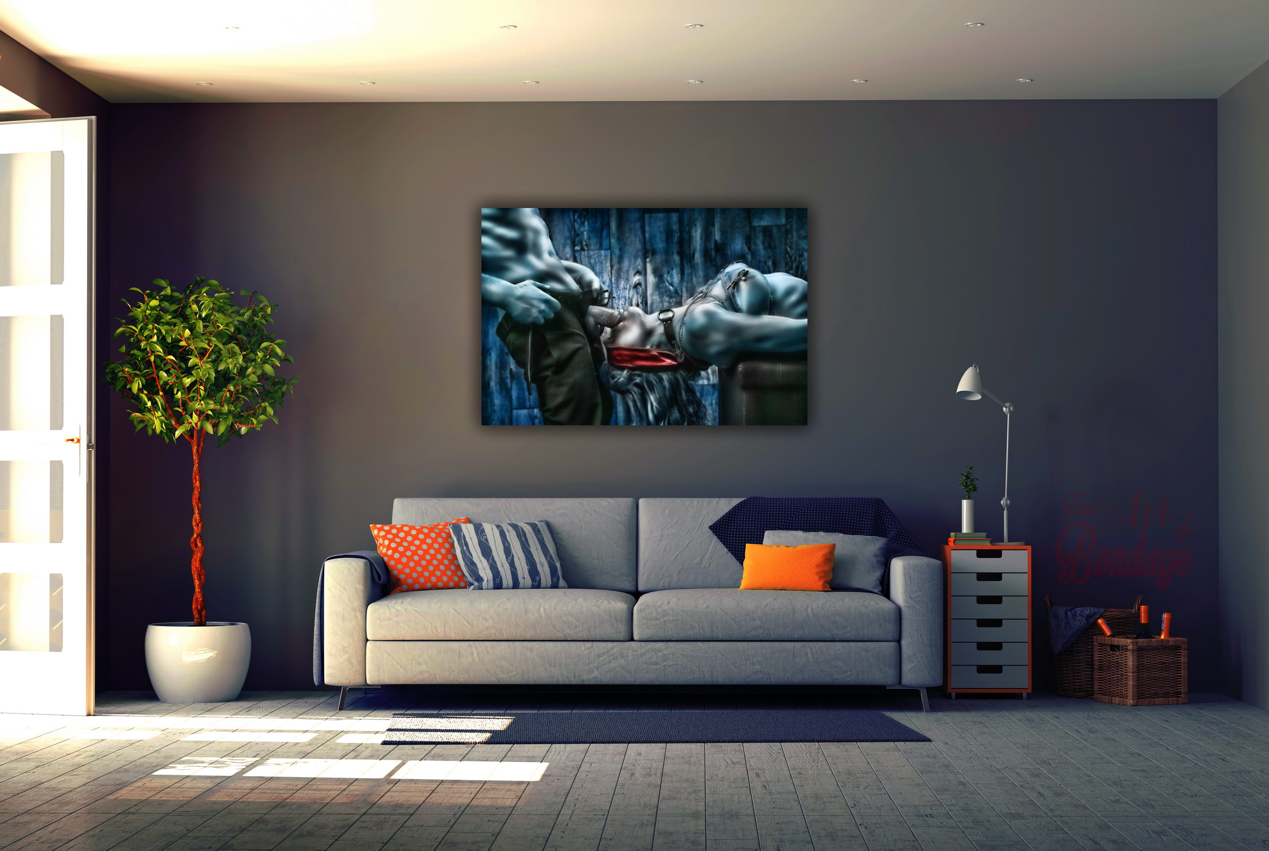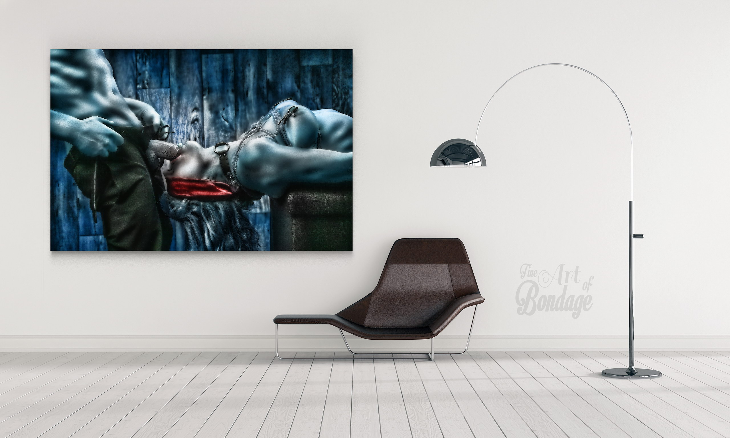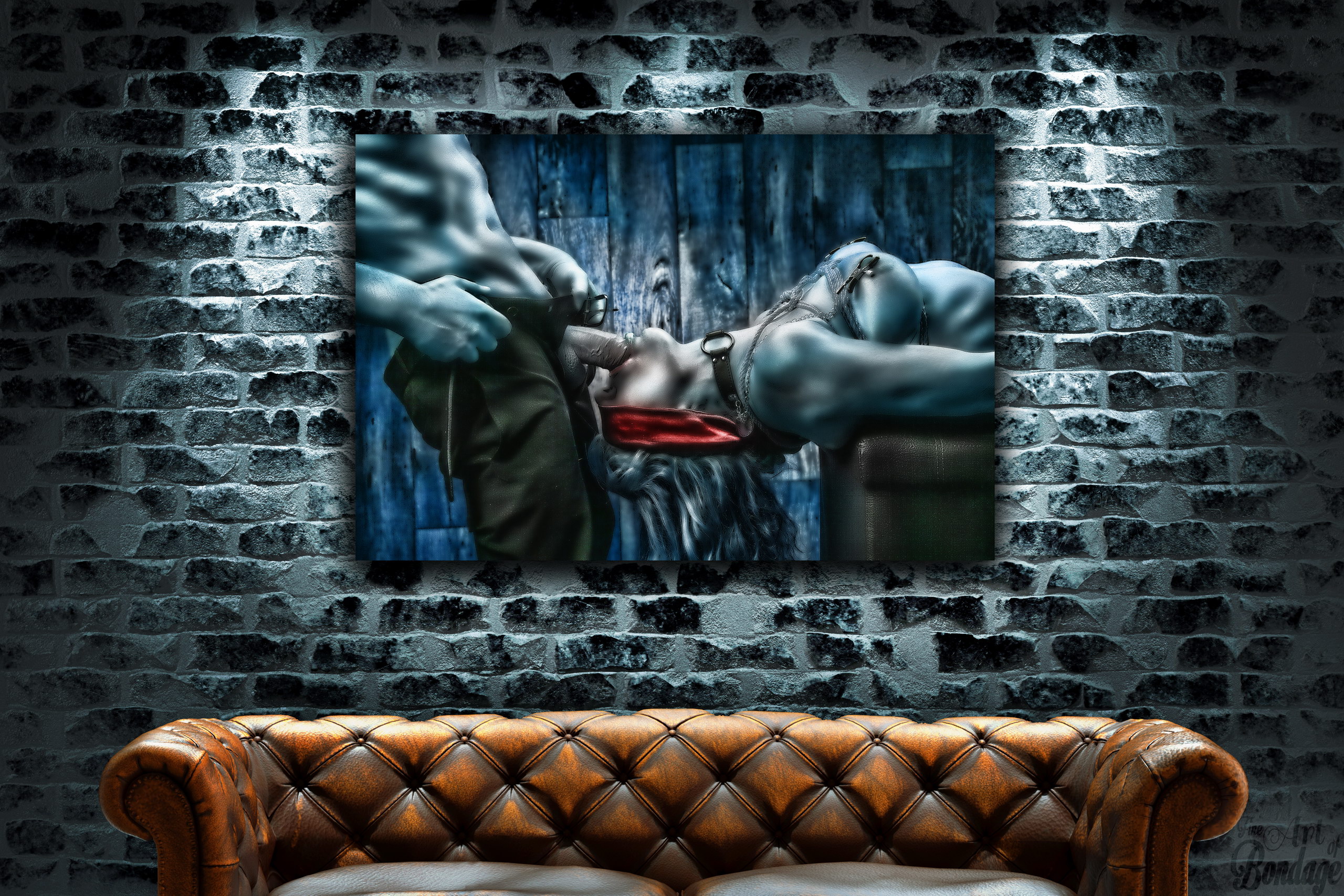 The image is from the "Fine Art of Bondage" photography project. Artful photography with highly retouched images in a very colorful and high contrast.