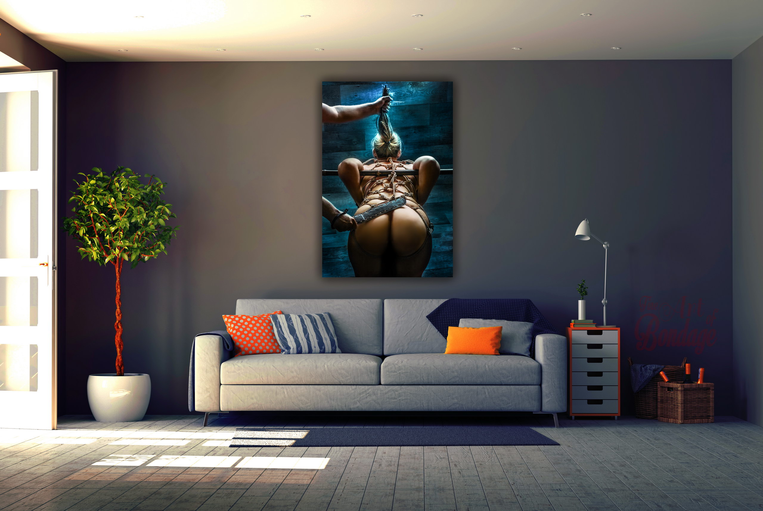 The image is from the "Fine Art of Bondage" photography project. Artful photography with highly retouched images in a very colorful and high contrast.