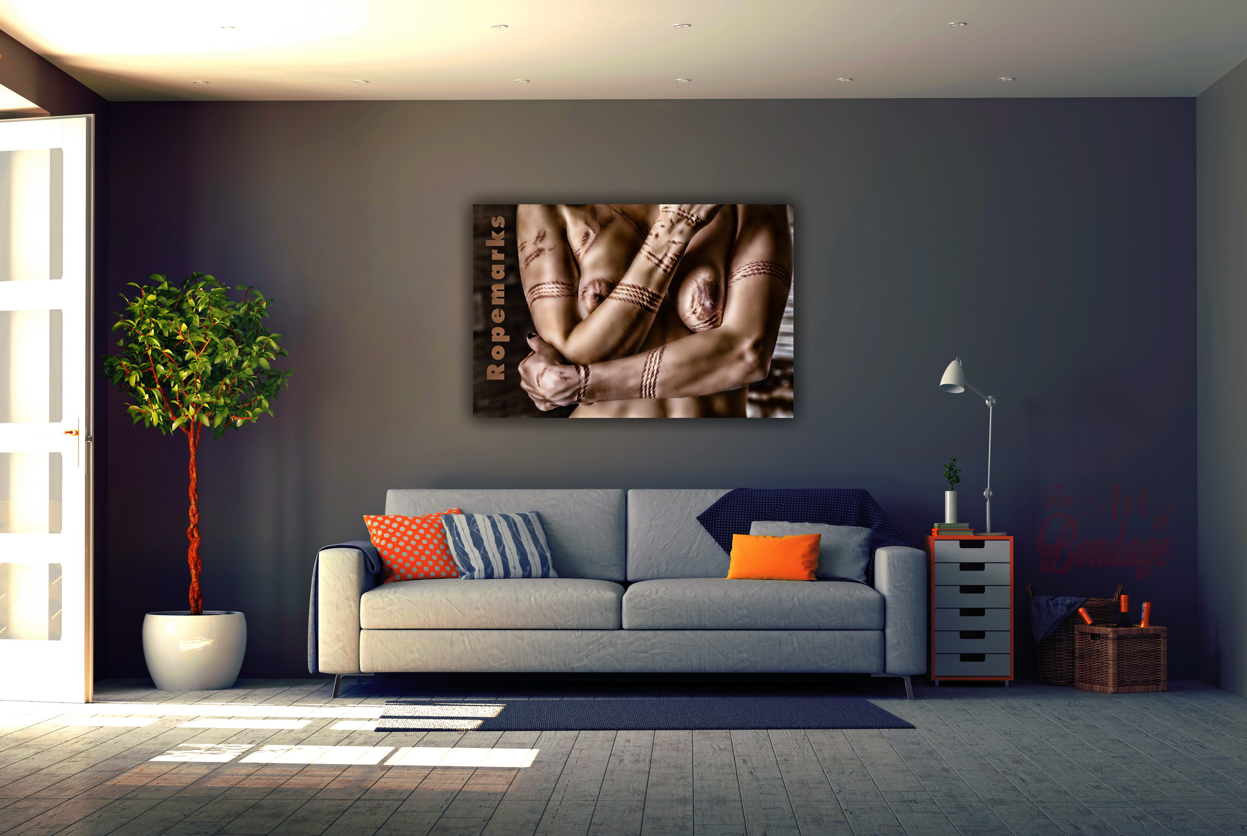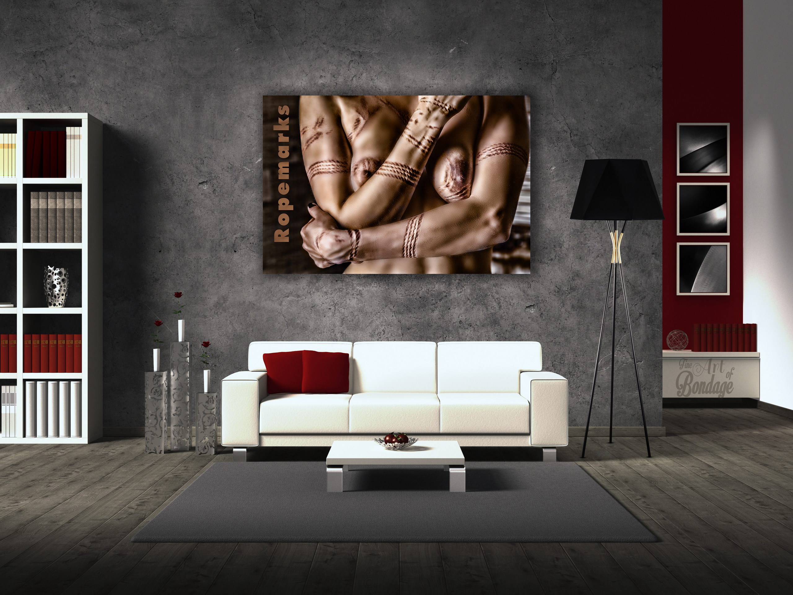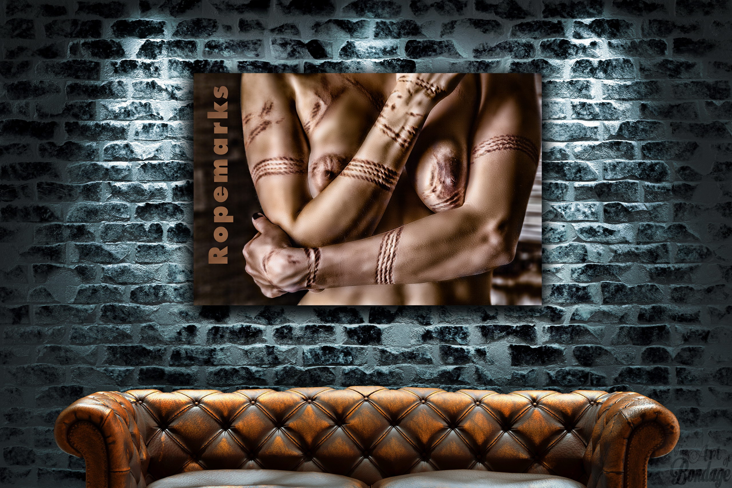 The image is from the "Fine Art of Bondage" photography project. Artful photography with highly retouched images in a very colorful and high contrast.