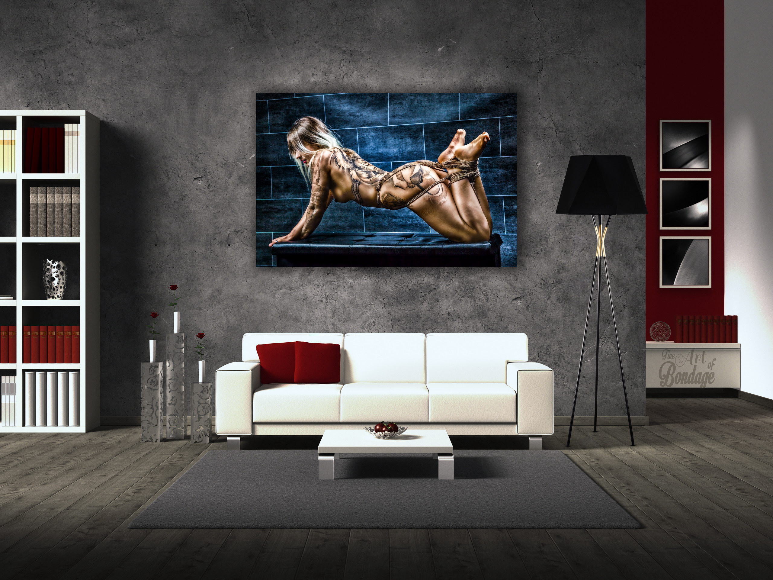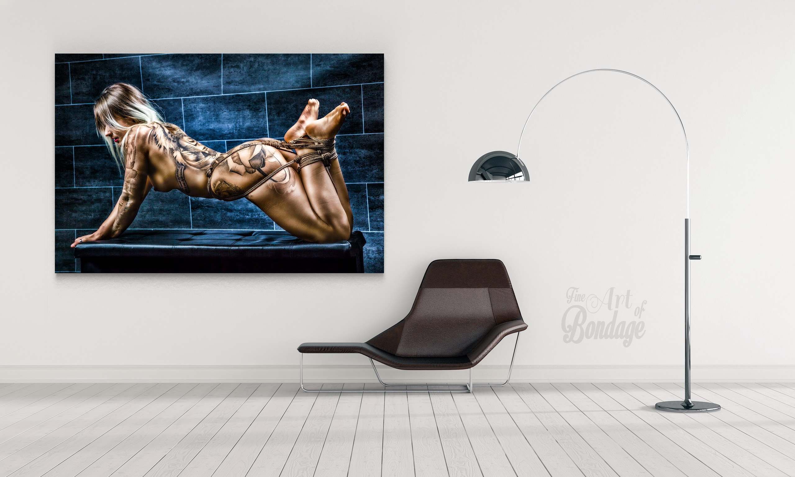 The image is from the "Fine Art of Bondage" photography project. Artful photography with highly retouched images in a very colorful and high contrast.