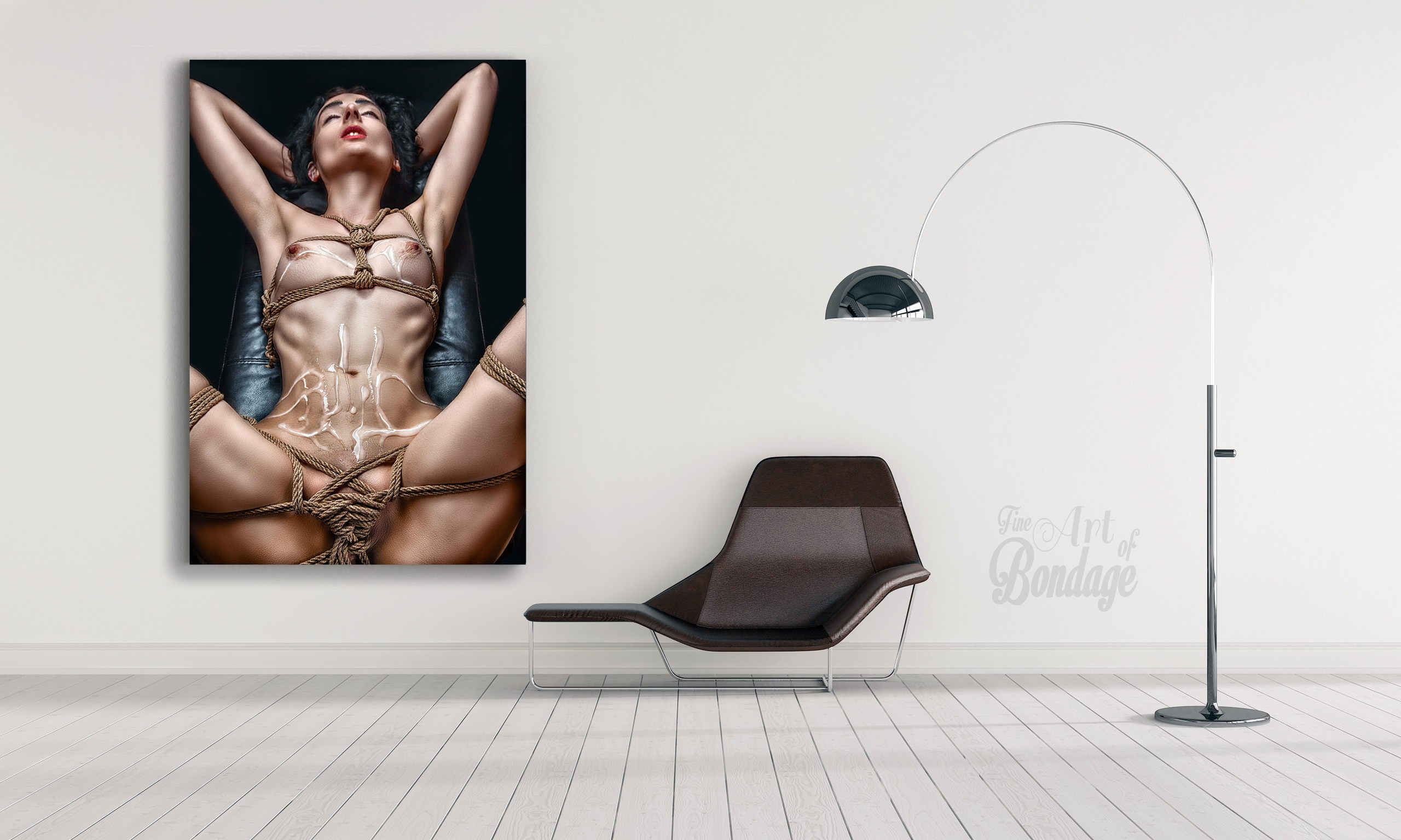 The image is from the "Fine Art of Bondage" photography project. Artful photography with highly retouched images in a very colorful and high contrast.