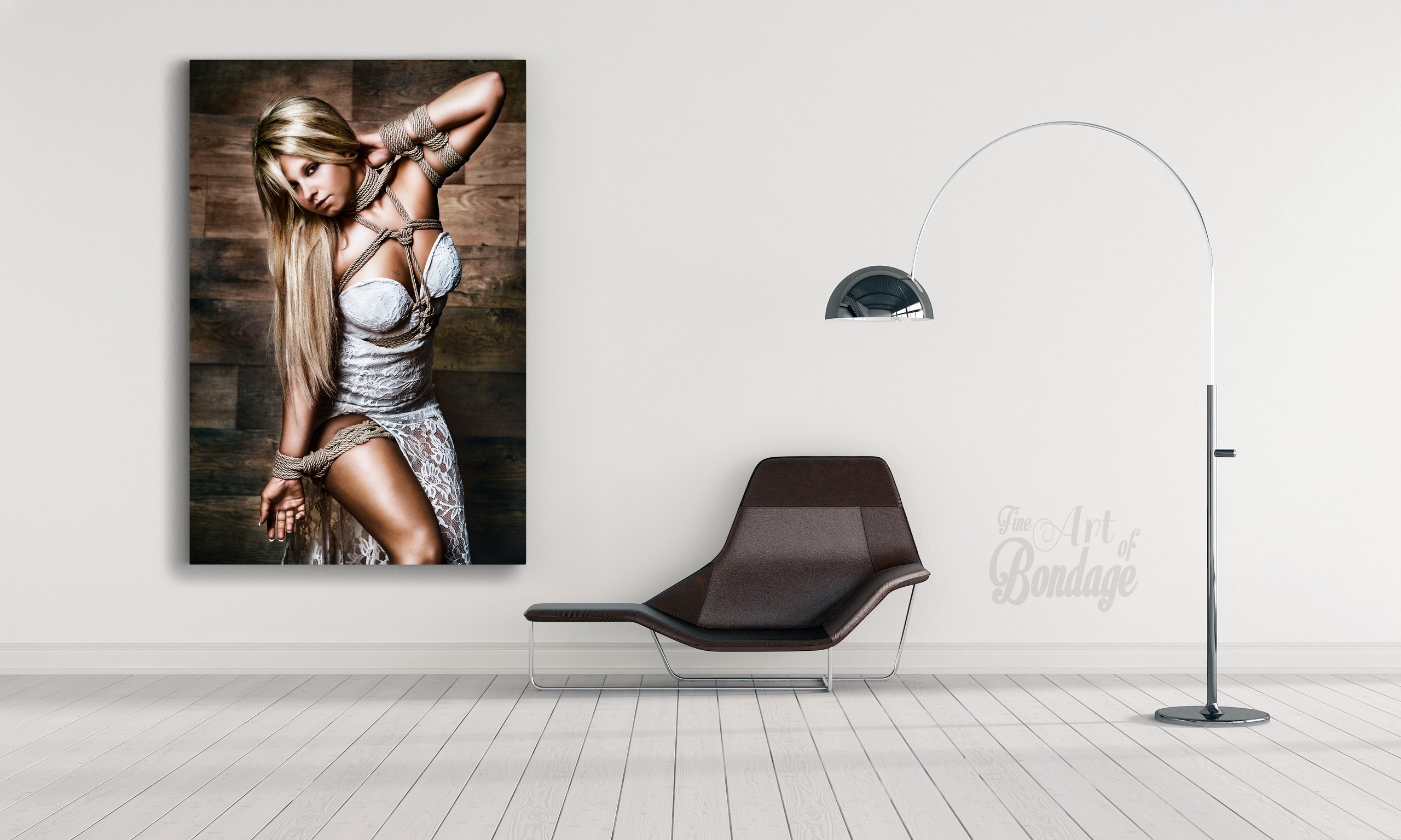 The image is from the "Fine Art of Bondage" photography project. Artful photography with highly retouched images in a very colorful and high contrast.