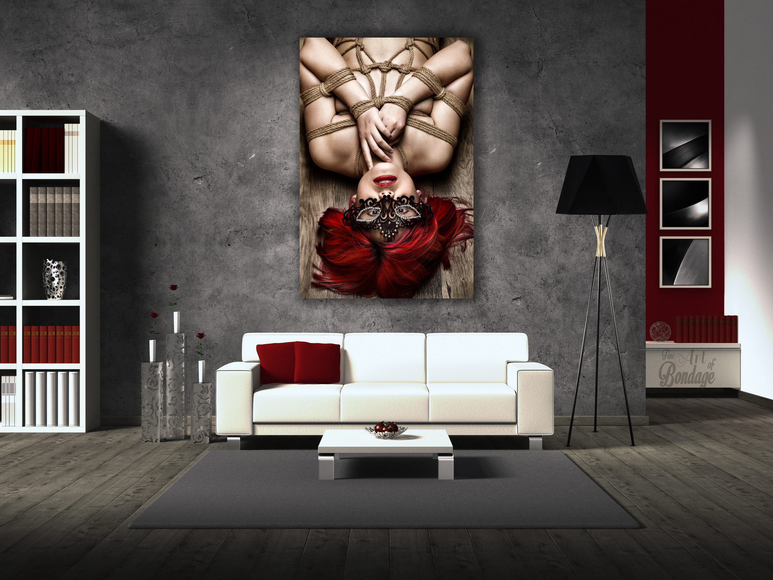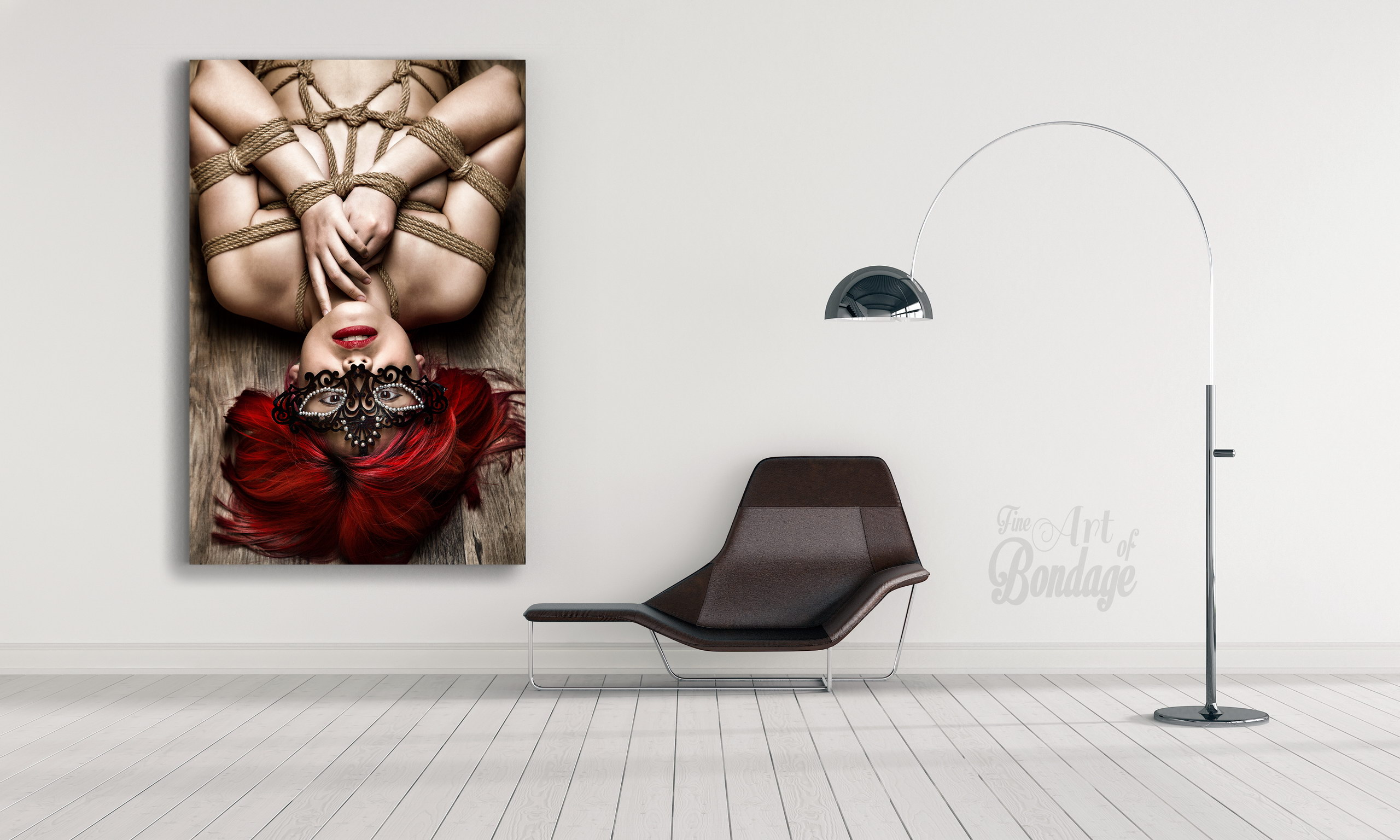The image is from the "Fine Art of Bondage" photography project. Artful photography with highly retouched images in a very colorful and high contrast.