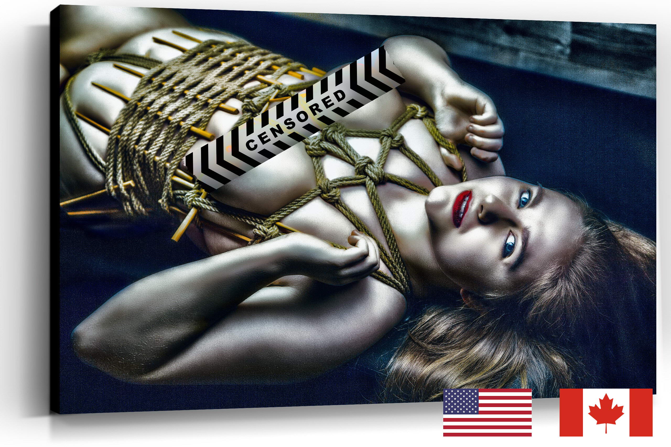 Tied Topless Rope - Model with just rope around her body. The knots on her belly with some bamboo sticks for a great look.