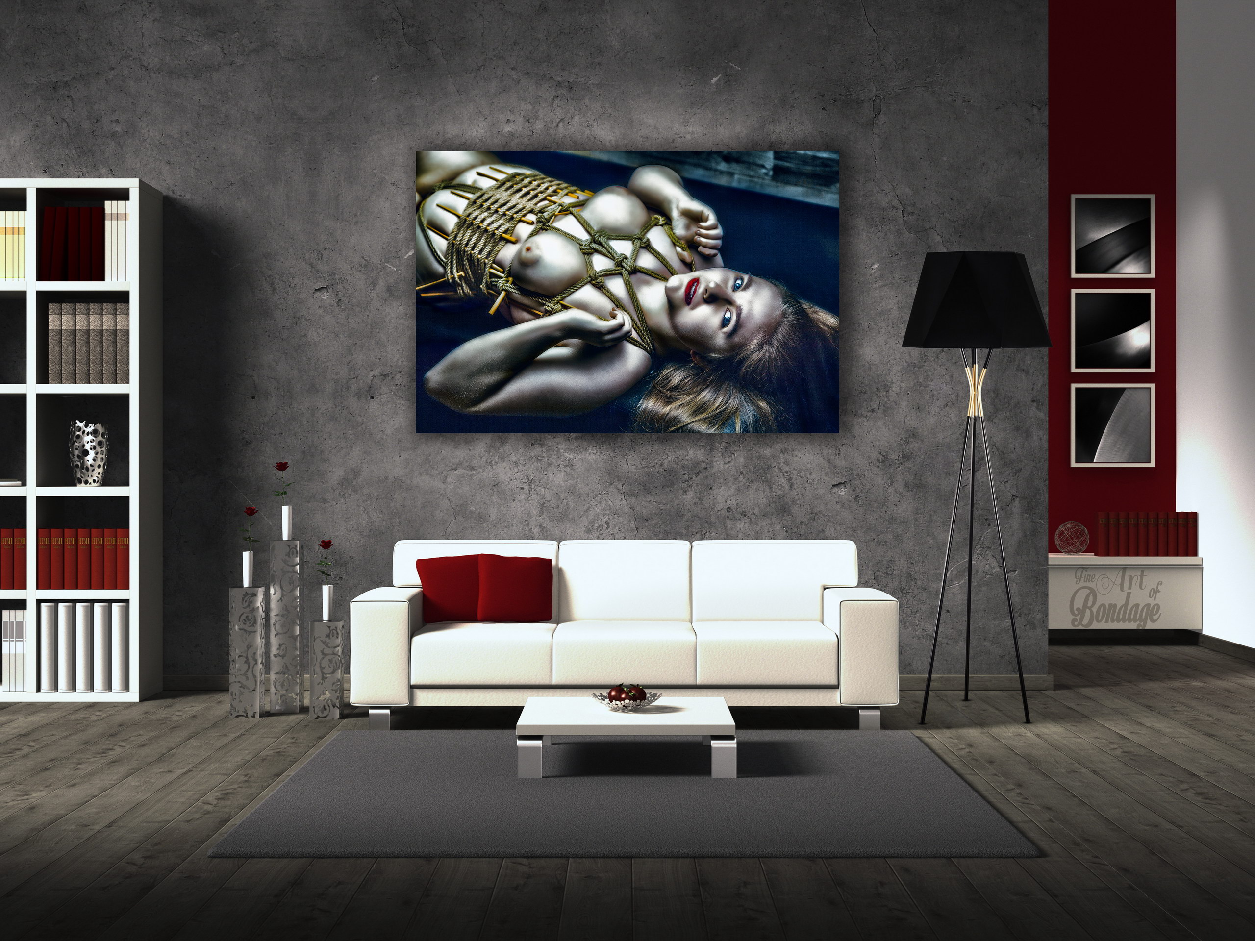 The image is from the "Fine Art of Bondage" photography project. Artful photography with highly retouched images in a very colorful and high contrast.
