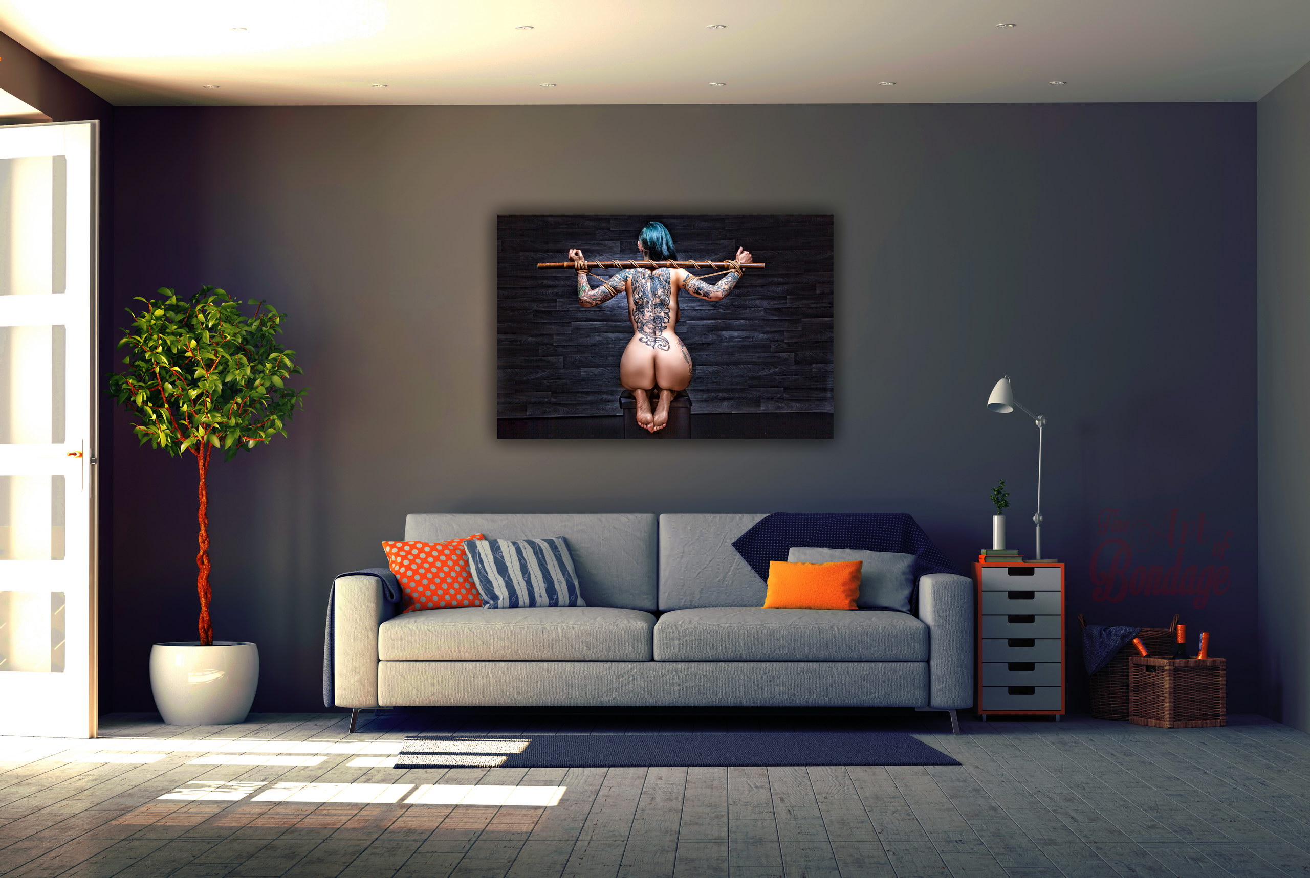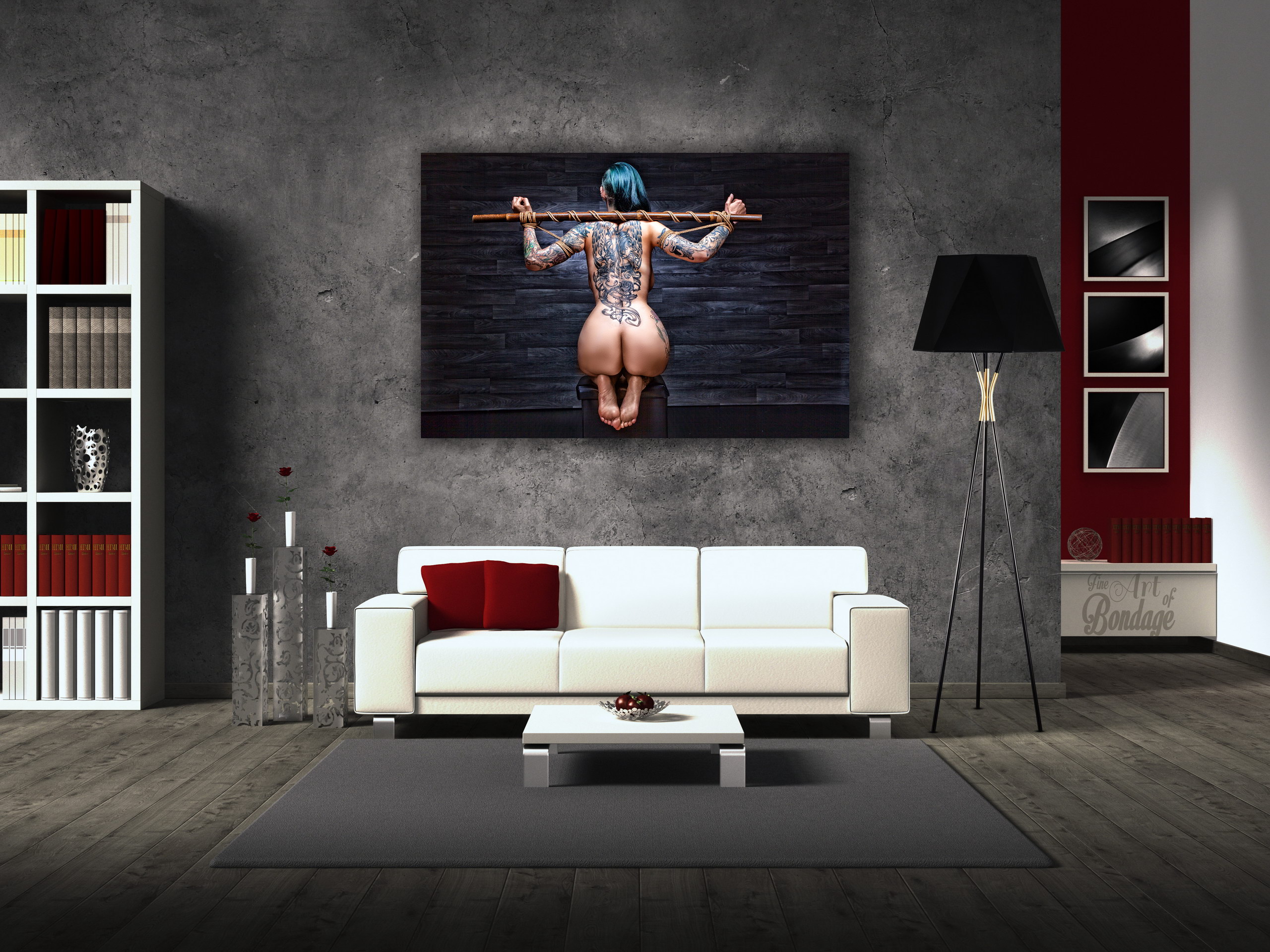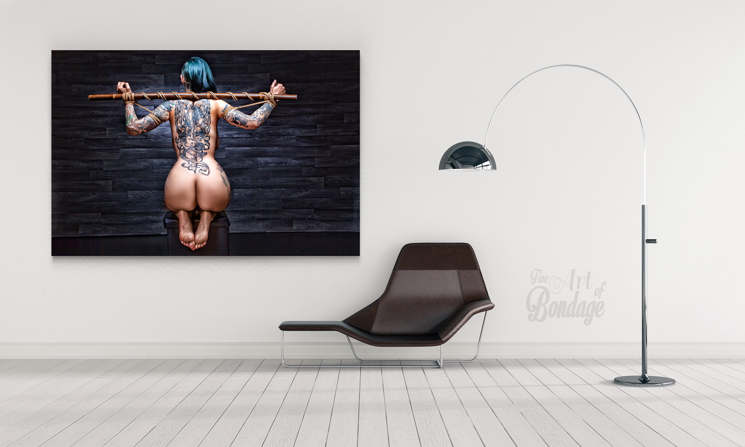The image is from the "Fine Art of Bondage" photography project. Artful photography with highly retouched images in a very colorful and high contrast.