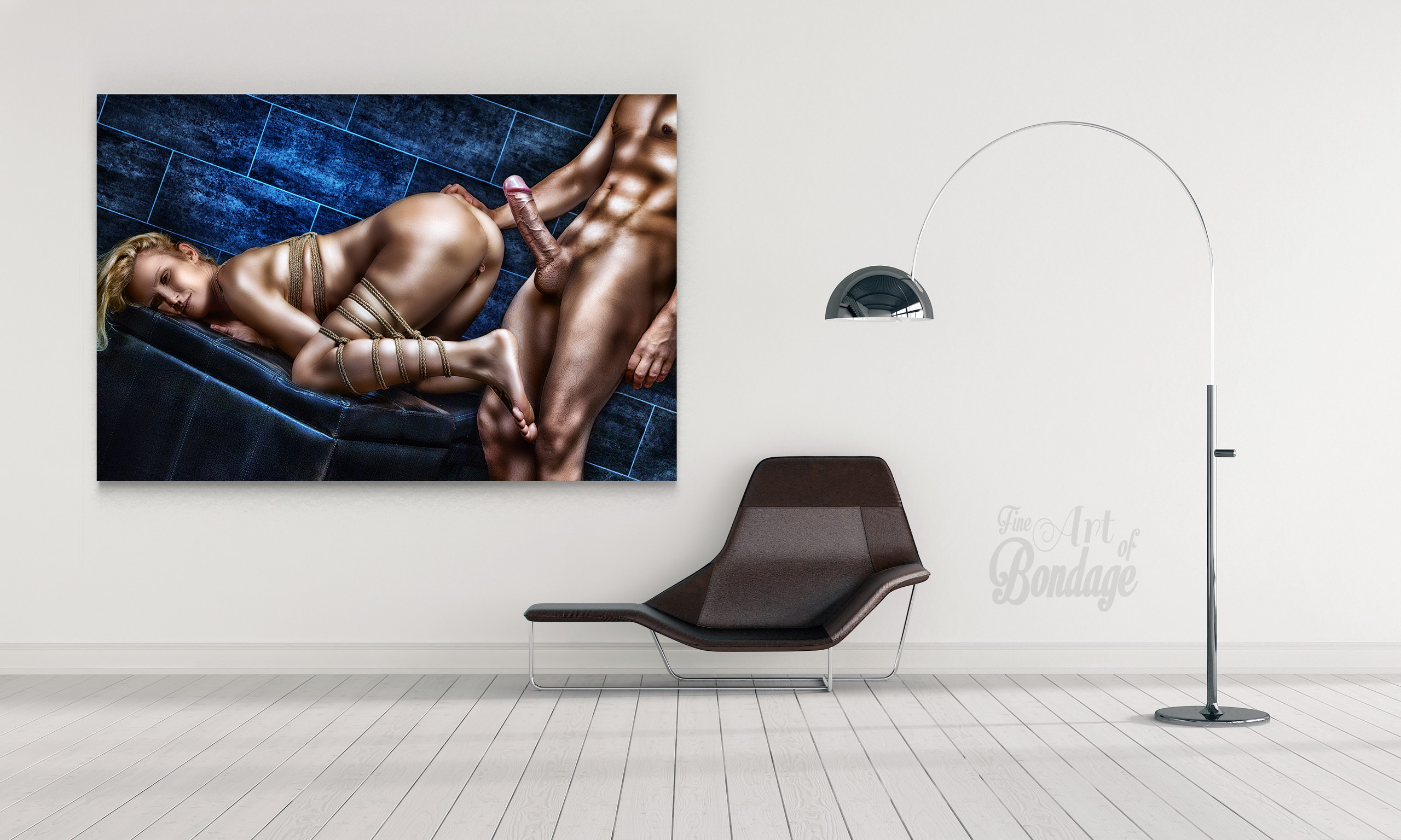 The image is from the "Fine Art of Bondage" photography project. Artful photography with highly retouched images in a very colorful and high contrast.