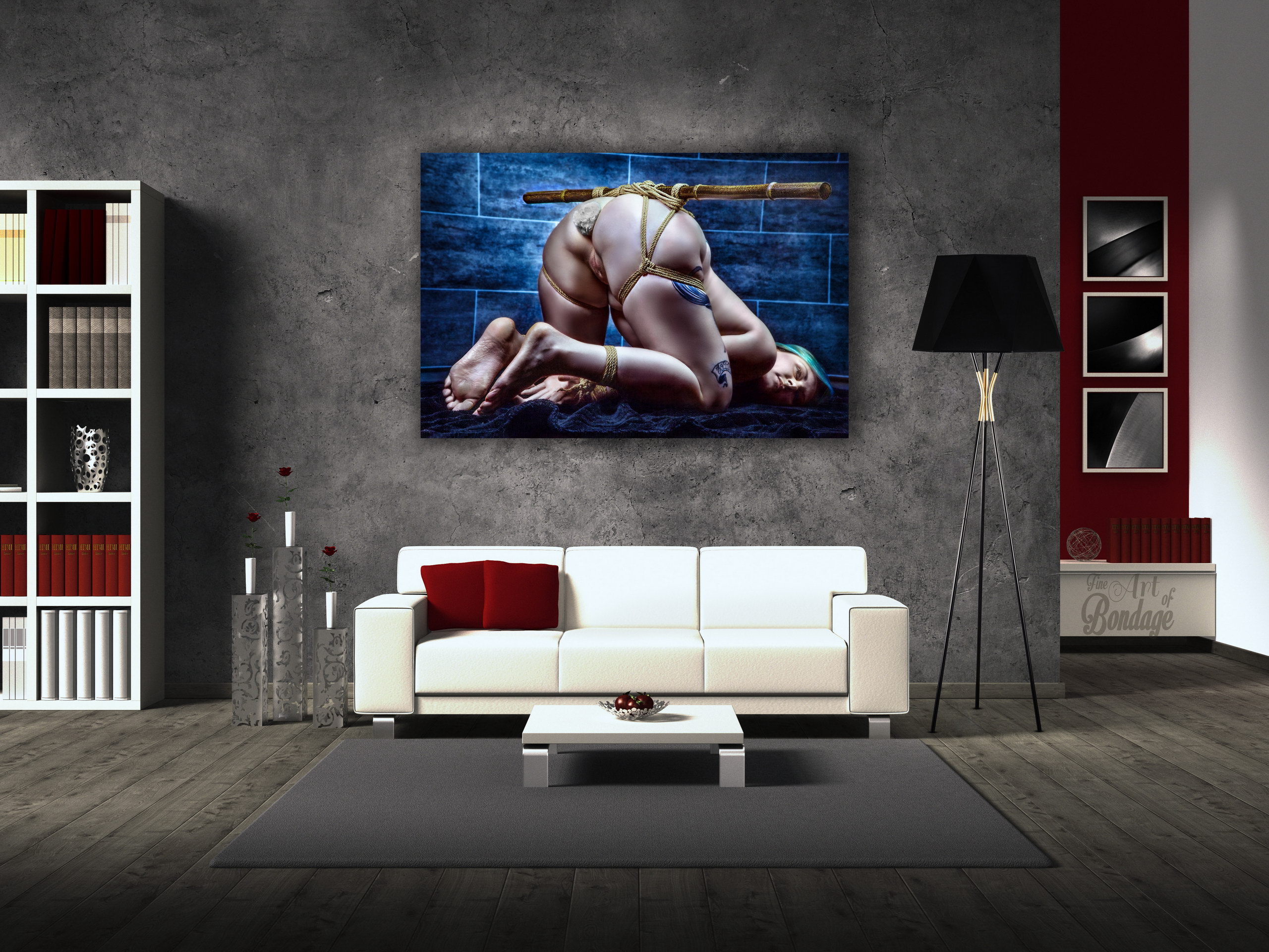 The image is from the "Fine Art of Bondage" photography project. Artful photography with highly retouched images in a very colorful and high contrast.