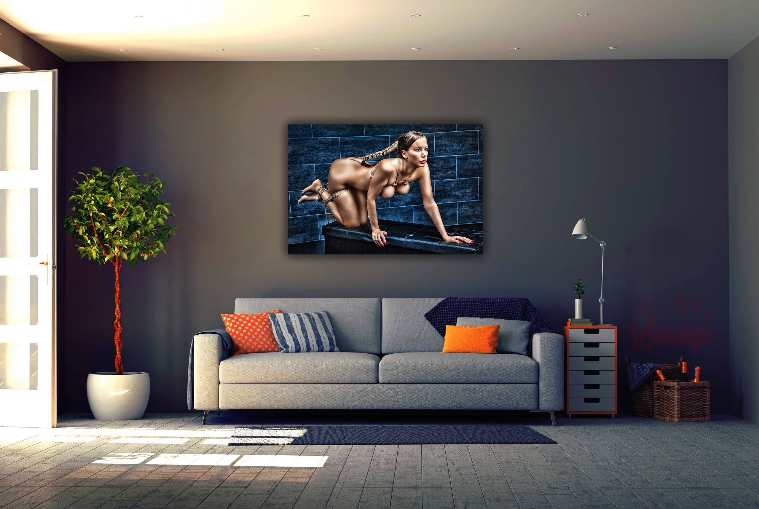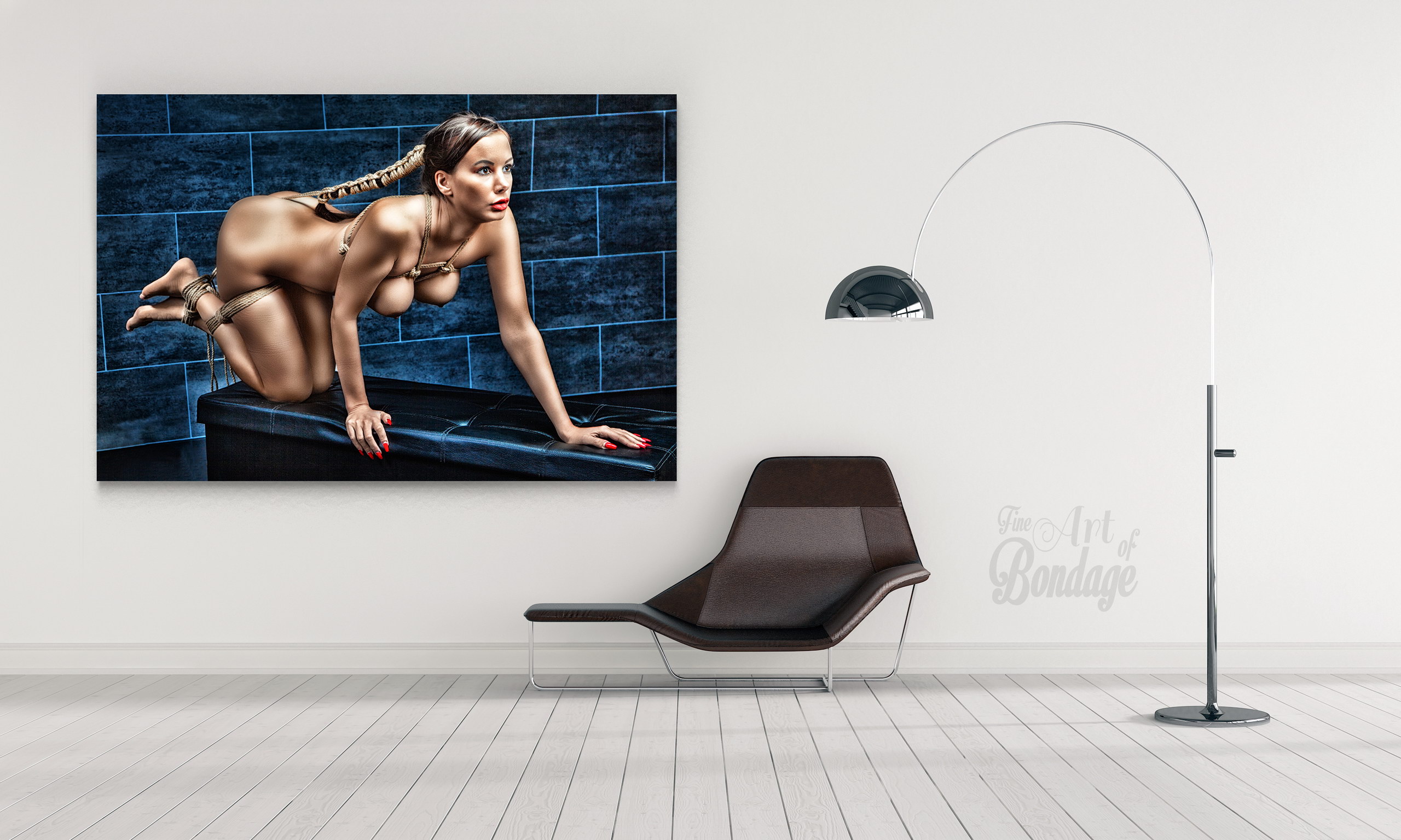 The image is from the "Fine Art of Bondage" photography project. Artful photography with highly retouched images in a very colorful and high contrast.