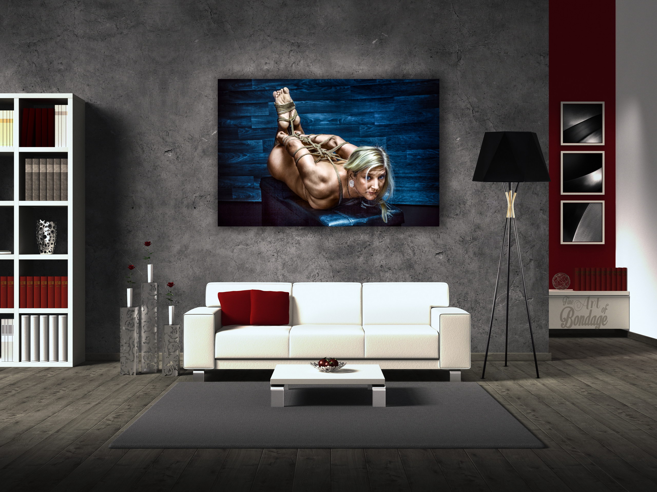 The image is from the "Fine Art of Bondage" photography project. Artful photography with highly retouched images in a very colorful and high contrast.