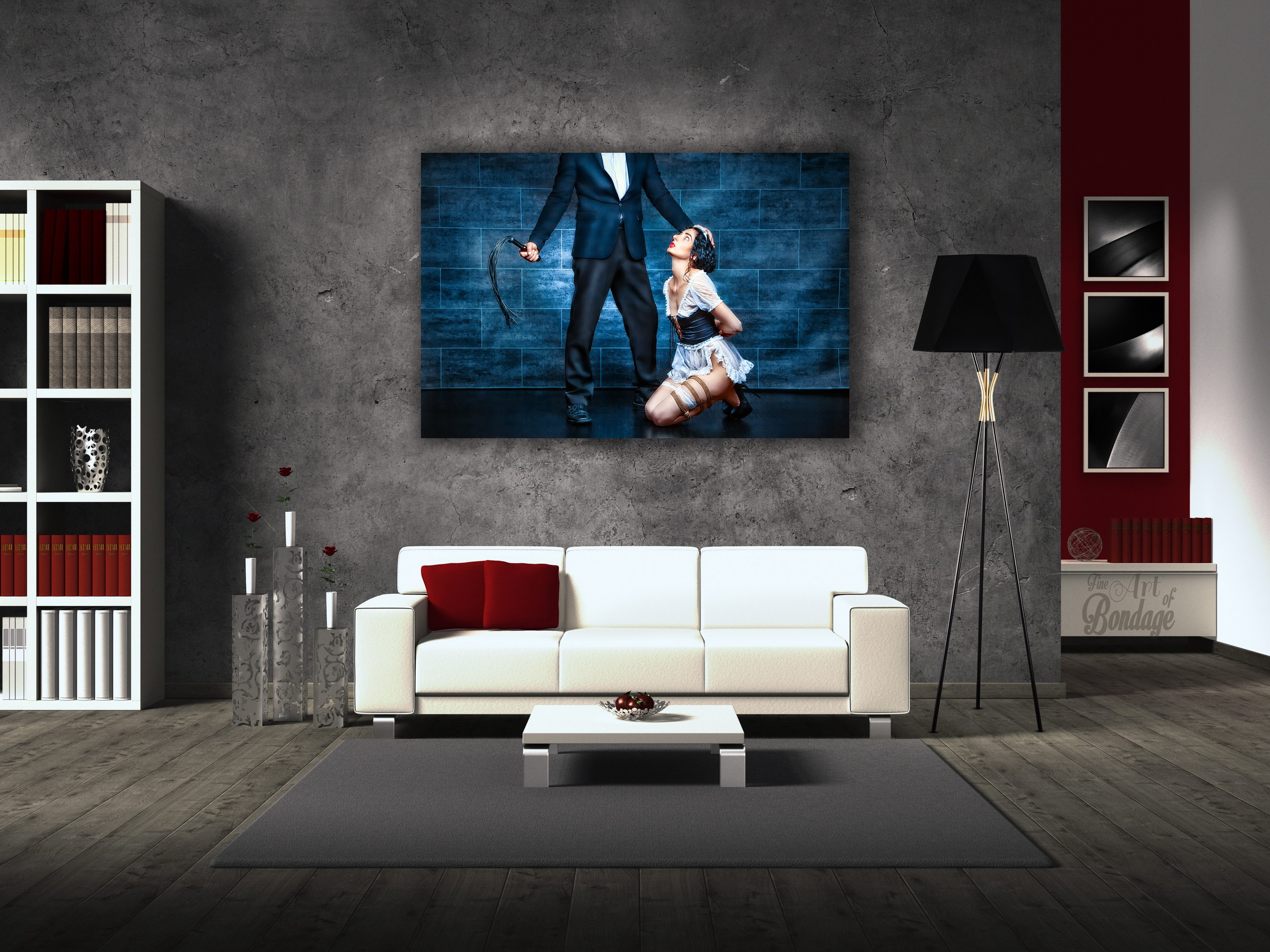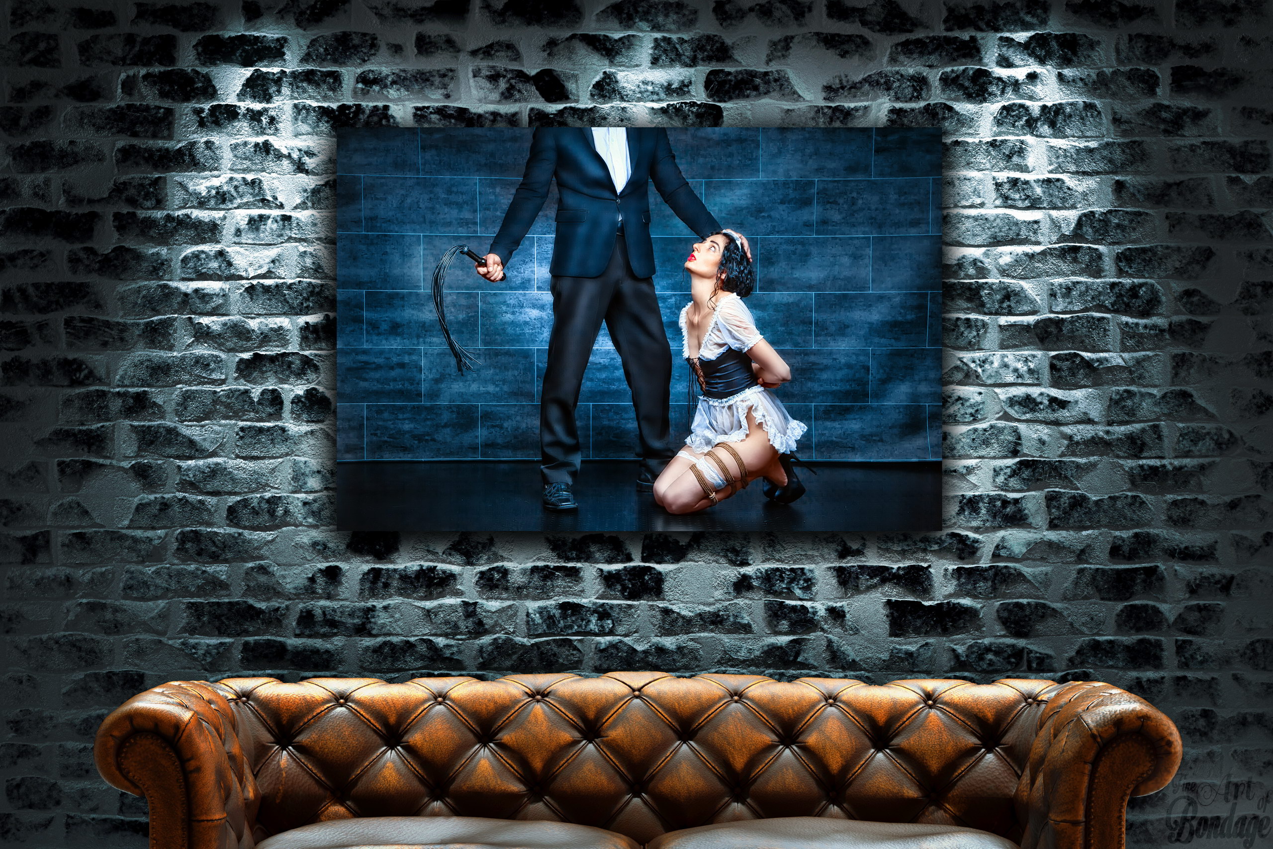 The image is from the "Fine Art of Bondage" photography project. Artful photography with highly retouched images in a very colorful and high contrast.