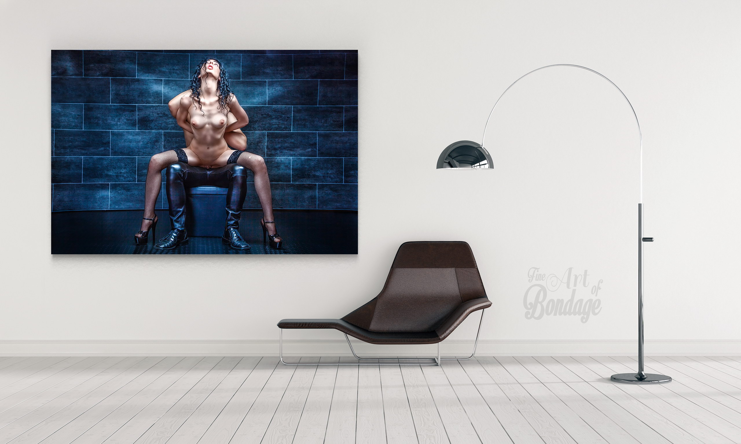 The image is from the "Fine Art of Bondage" photography project. Artful photography with highly retouched images in a very colorful and high contrast.