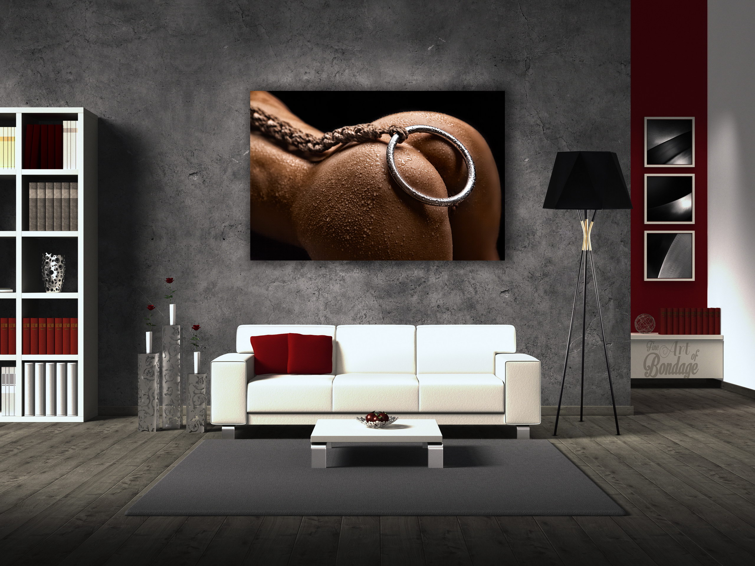The image is from the "Fine Art of Bondage" photography project. Artful photography with highly retouched images in a very colorful and high contrast.